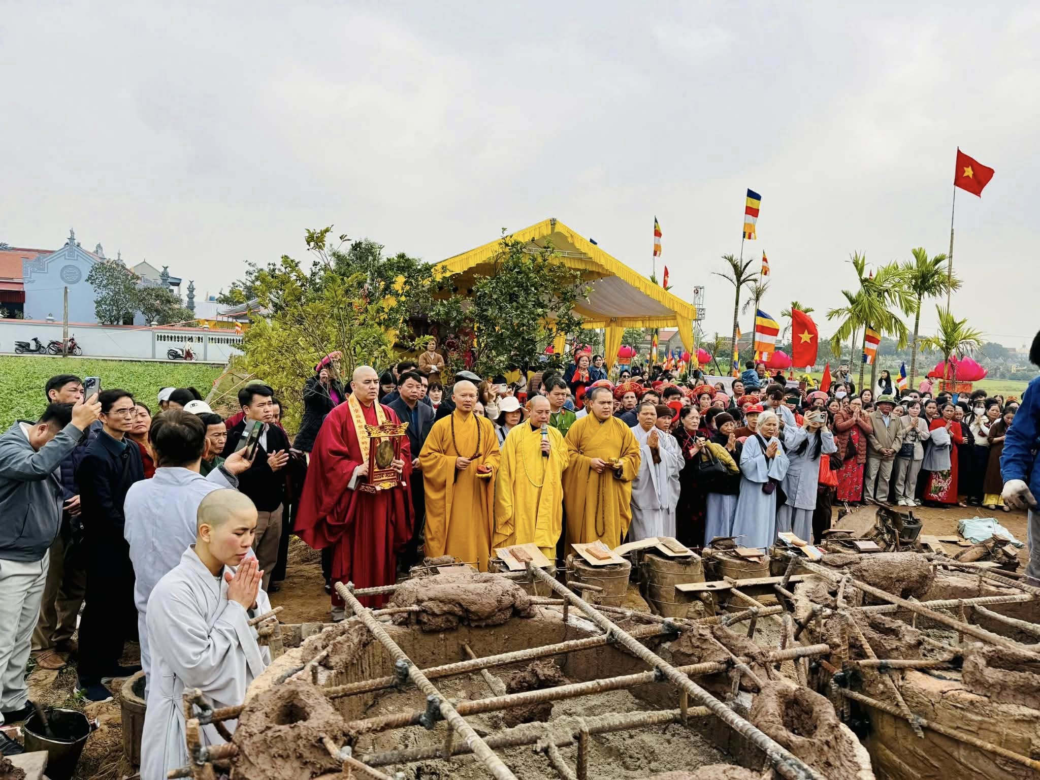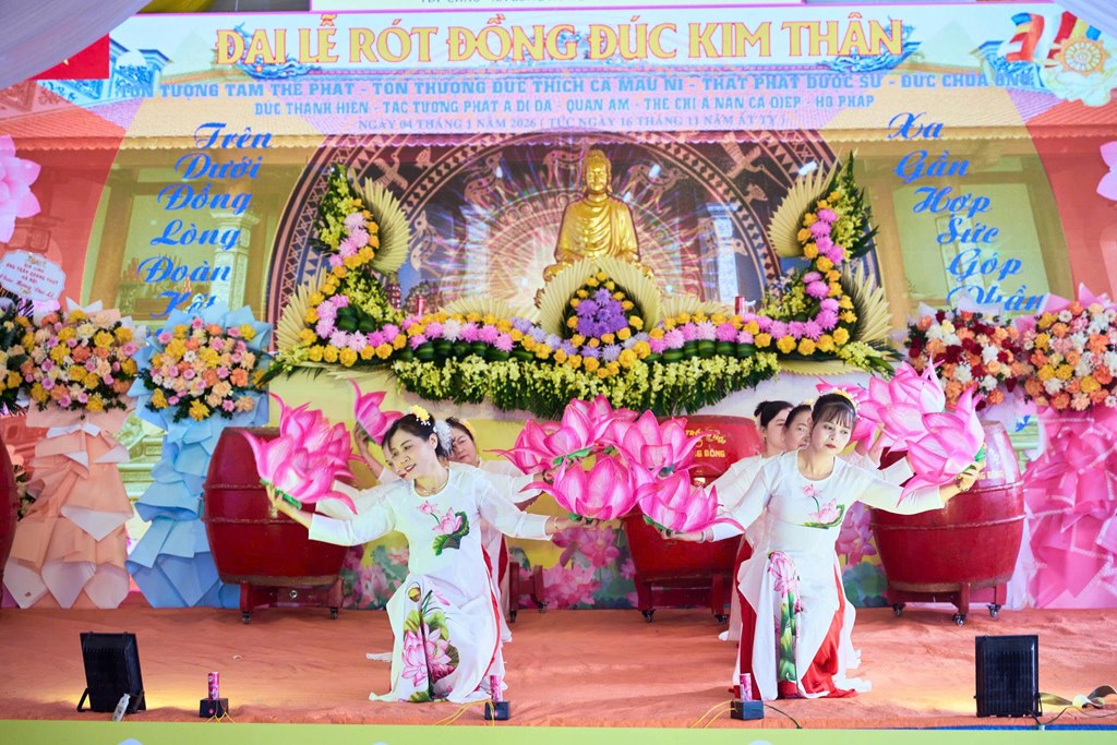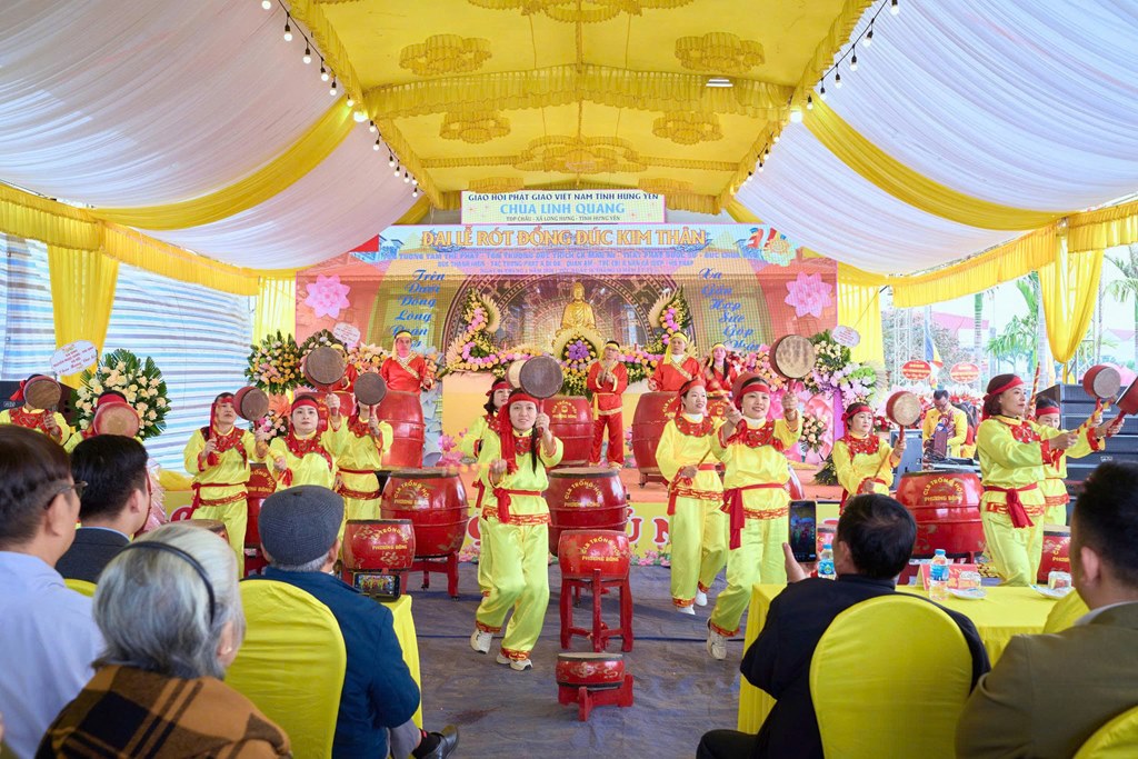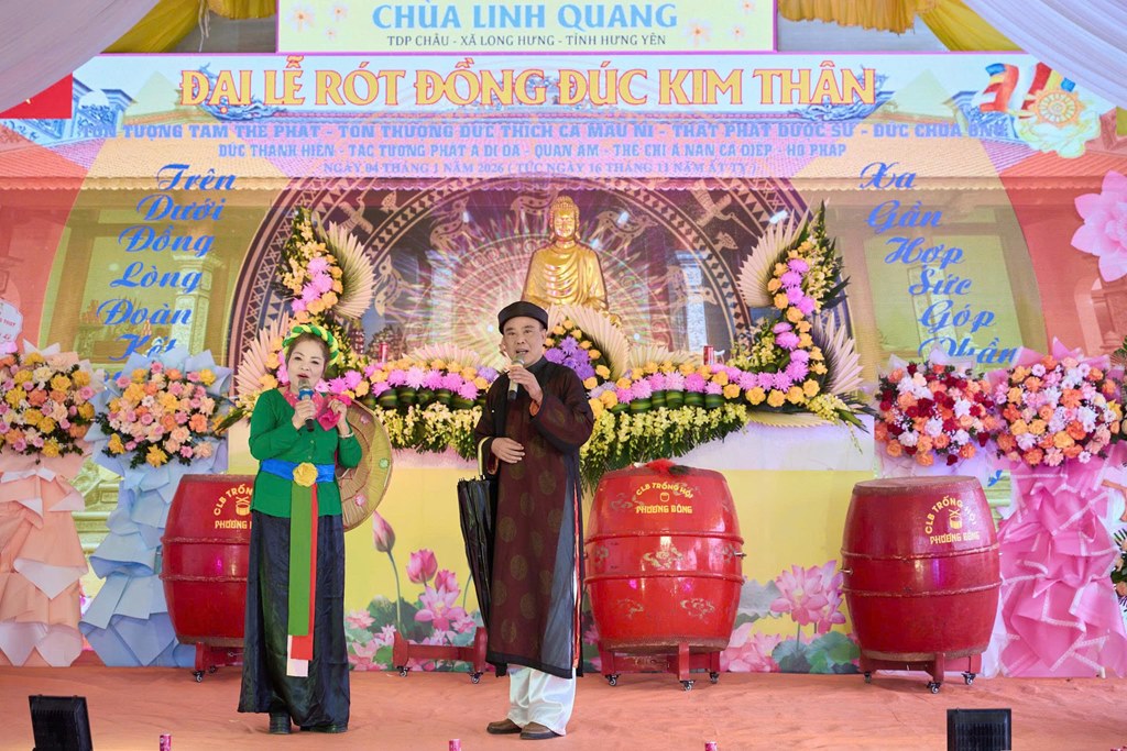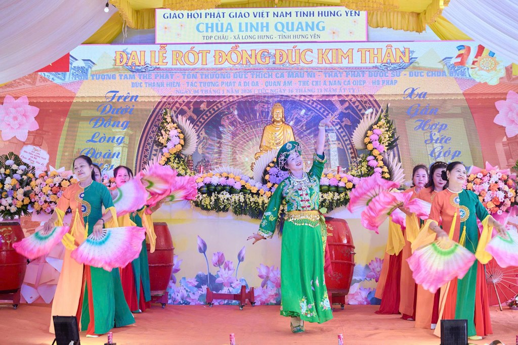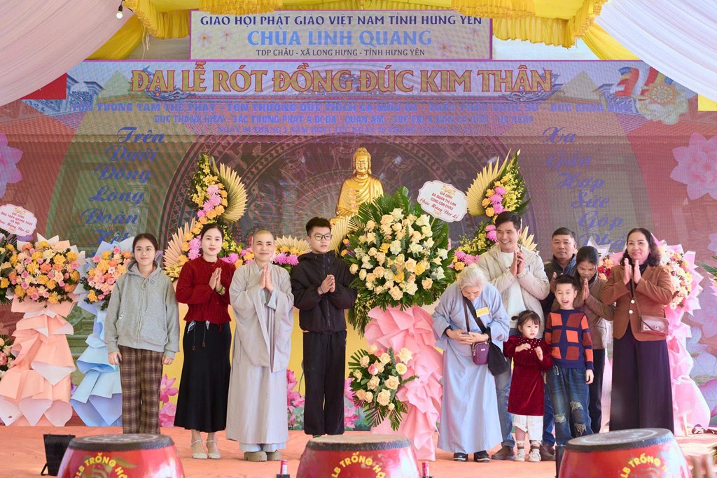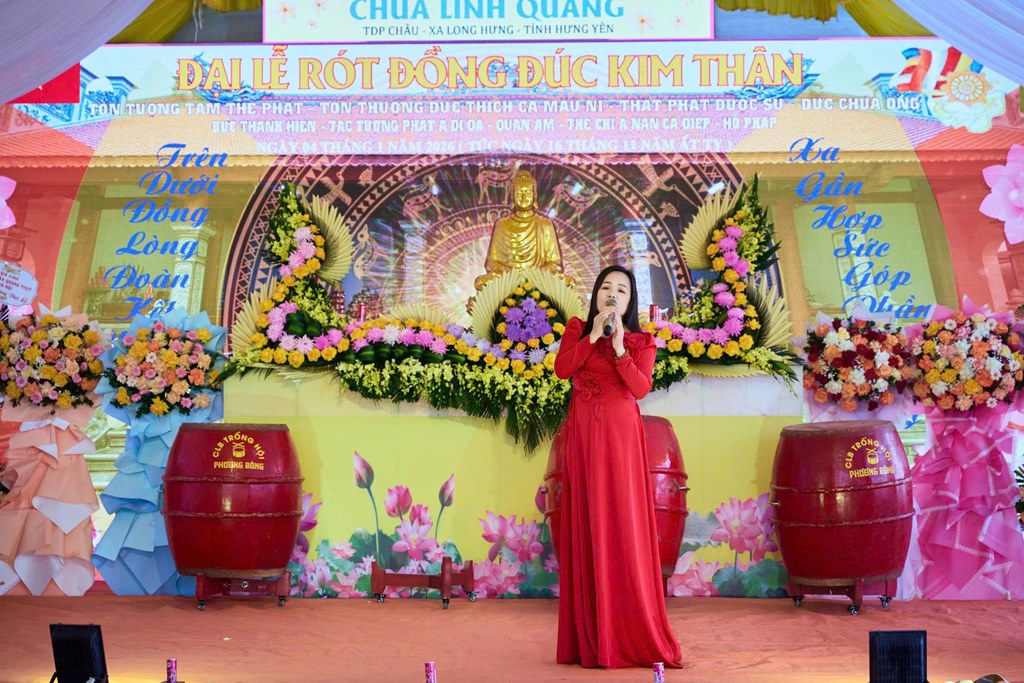 Nhân kỷ niệm khánh đản Đức Phật A Di Đà, sáng ngày 04/01/2026 (Nhằm ngày 16/11 năm Ất Tỵ), tại chùa Linh Quang (Tổ dân phố Châu, xã Long Hưng, tỉnh Hưng Yên) đã long trọng diễn ra Đại lễ rót đồng đúc hơn 13 tôn tượng kim thân Đức Phật, Bồ Tát, Hộ Pháp và Thánh Tăng.