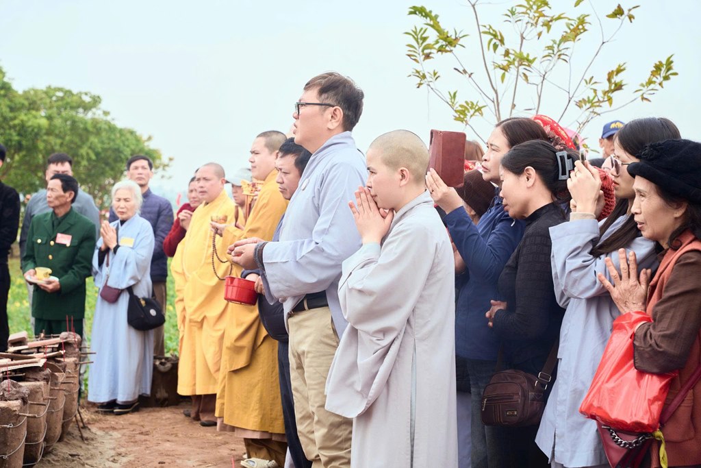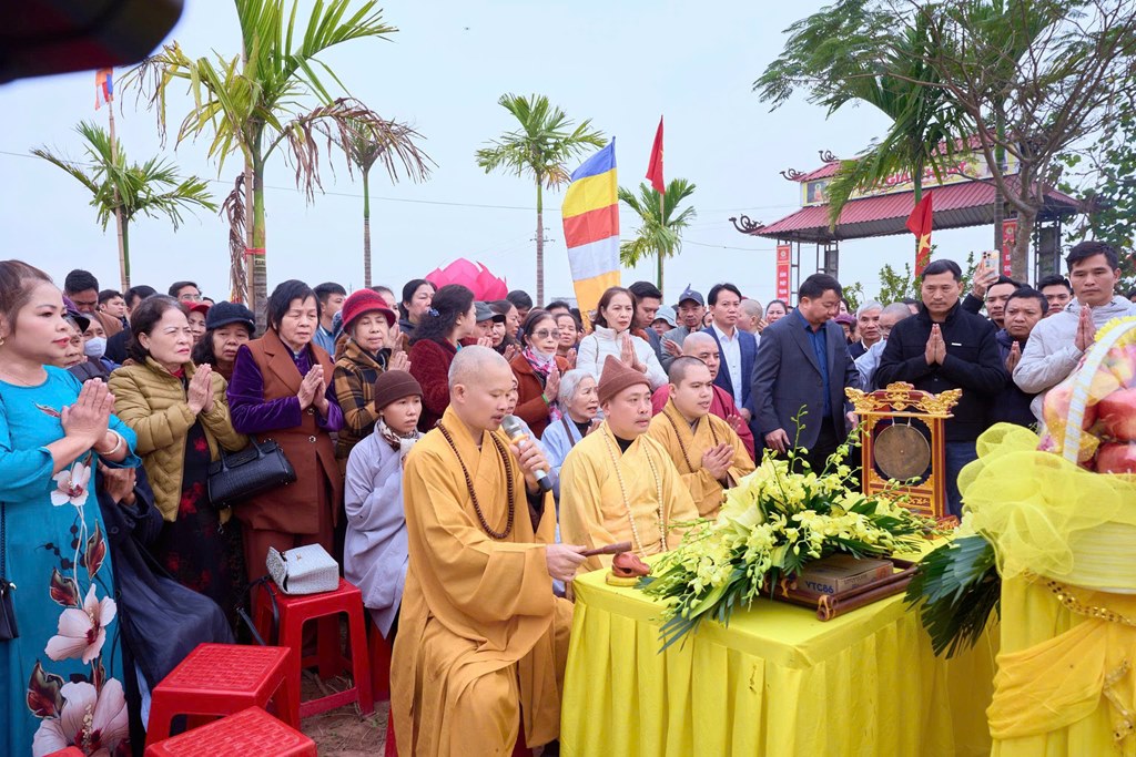 Trước khi kết thúc buổi lễ, chư tôn đức Tăng Ni, chính quyền, quý Phật tử gần xa và nhân dân địa phương đã cử hành nghi lễ trì chú, sái tịnh, tụng kinh và rót đồng đúc kim thân Phật tượng trong không khí trang nghiêm, thành kính, hoan hỷ, kính dâng lên Đức từ phụ A Di Đà nhân kỷ niệm ngày khánh đản, hồi hướng công đức lành, cầu nguyện cho thế giới hòa bình, chúng sinh an lạc, âm siêu, dương khánh, thiền môn hưng thịnh.