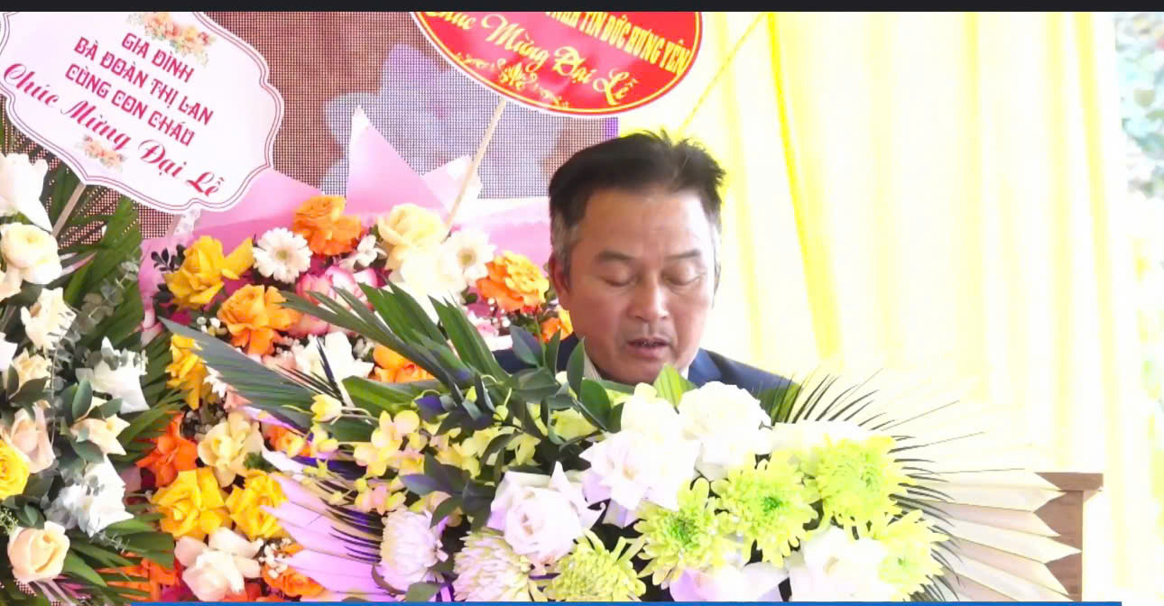 Ông Đỗ Văn Lập, tổ trưởng tổ dân phố Châu đại diện chính quyền địa phương lên phát biểu tại đại lễ