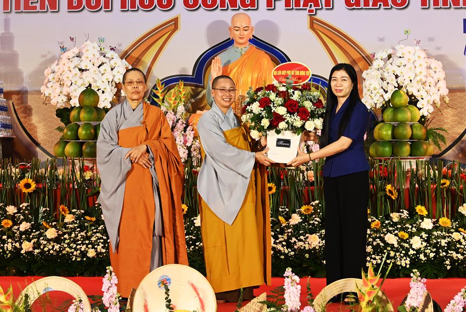 Phát biểu tại buổi lễ, bà Đinh Thị Hoàn đại diện chính quyền tỉnh ghi nhận những đóng góp tích cực của Ni giới tỉnh nhà trong công tác Phật sự và an sinh xã hội, góp phần xây dựng quê hương Hưng Yên ngày càng giàu đẹp.
