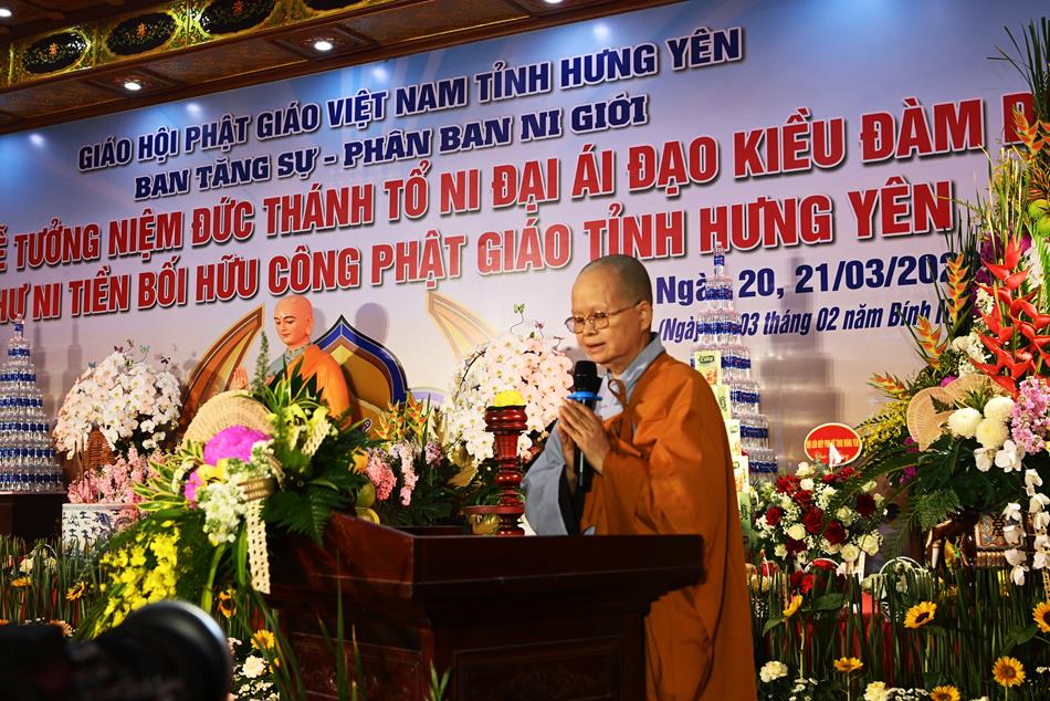 Ban đạo từ tại đại lễ, Thượng tọa Thích Thanh Hòa đã tán thán công đức của Phân ban Ni giới tỉnh. Thượng tọa mong muốn chư Ni tiếp tục kế thừa lý tưởng của Thánh Tổ, giữ gìn giới luật, đoàn kết và trang nghiêm Ni đoàn để xứng đáng là bậc hậu duệ của Đức Kiều Đàm Di.