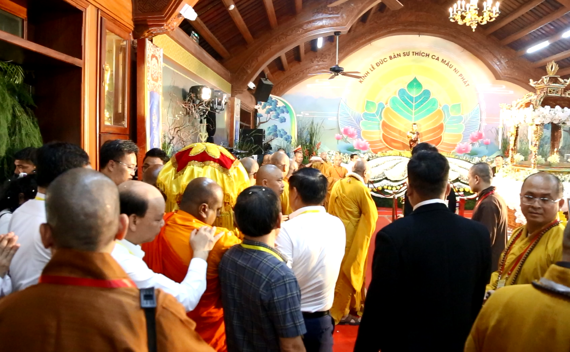 Nghi lễ chính được tổ chức tại chính điện Tam Bảo chùa Chuông. Tại đây, chư Tôn đức đã thực hiện nghi thức cung nghinh Xá lợi, tụng kinh cầu nguyện quốc thái dân an, thế giới hòa bình, chúng sinh an lạc. Sau nghi lễ, Xá lợi Đức Phật được an vị trang trọng để Tăng Ni, Phật tử và nhân dân thập phương có thể chiêm bái, đảnh lễ.