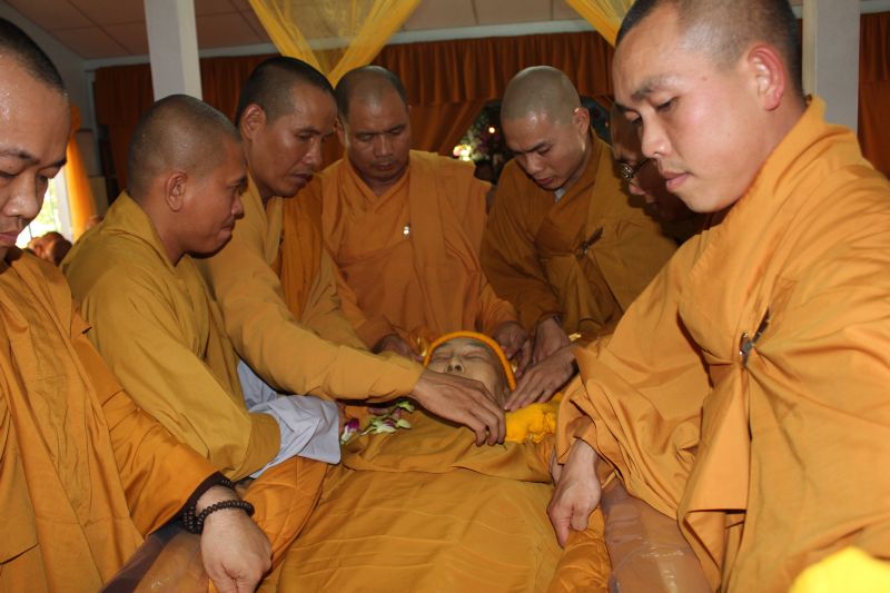 Có lần con mạo muội hỏi thầy: “Thầy bệnh từ xưa đến nay bao nhiêu năm, lần này Thầy cảm thấy thế nào?” Thầy đáp: “Những lần trước bệnh, Thầy còn có chút lo lắng nhưng lần này Thầy thấy mình mạnh mẽ“, con nghĩ Thầy sẽ qua khỏi cơn bạo bệnh này nào ngờ… Chỉ vài ngày sau đó, Thầy đã mãi mãi ra đi, để lại trong chúng con bài học về sự tự chủ khi lâm trọng bệnh và gương mặt tự tại như an giấc của Thầy trong lúc ra đi. Con không thể quên được nét mặt an nhiên của Thầy giống như ông Phật – “nickname” mà chúng đệ tử nhiều khóa học vẫn dùng để gọi Thầy.