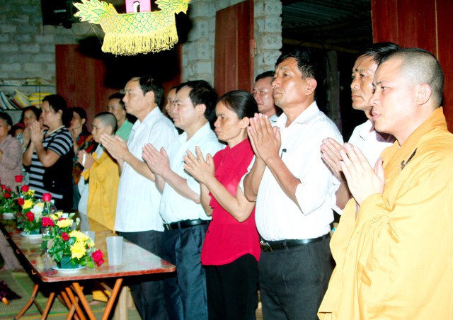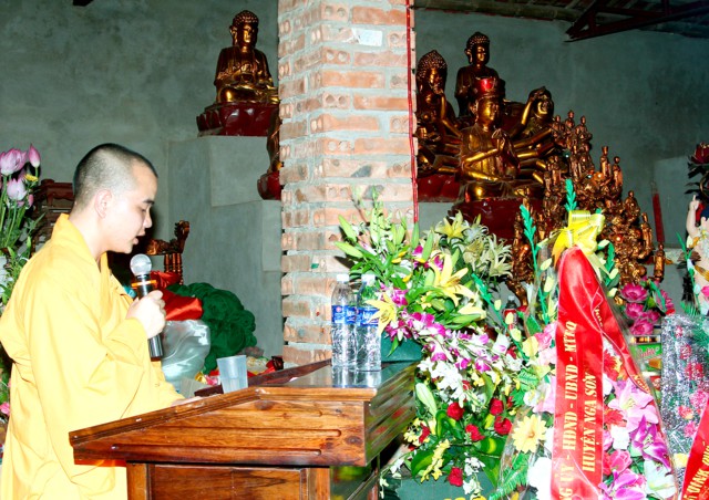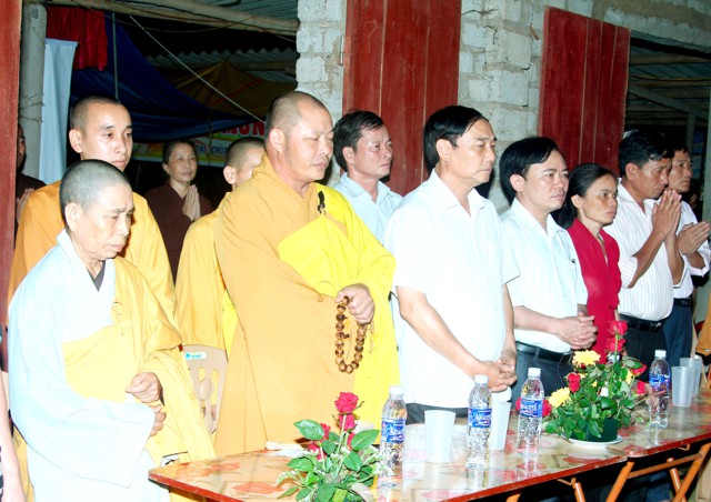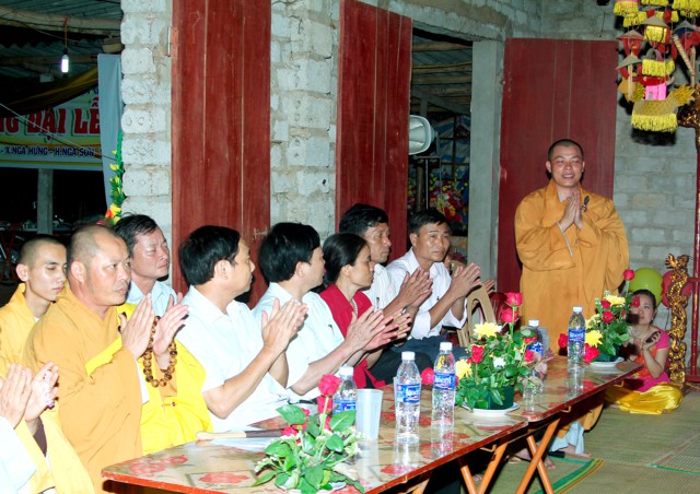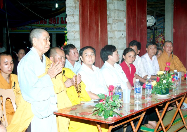 Quang lâm chứng minh cho buổi lễ được thập phần công đức có Thượng Tọa Thích Tâm Định – UV Ban Từ Thiện Tw GHPGVN – Phó BTS THPG Thanh Hóa , ĐĐ. Thích Tâm Chính – UV Ban Phật Giáo Quốc Tế TW GHPGVN – Chánh VP Tỉnh Hội PG Thanh Hóa – Chánh Ban Đại Diện Huyện Hội Phật Giáo Nga Sơn, cùng chư tôn đức tăng ni trụ trì các chùa trong và ngoài huyện, đông đảo tín đồ Phật tử.