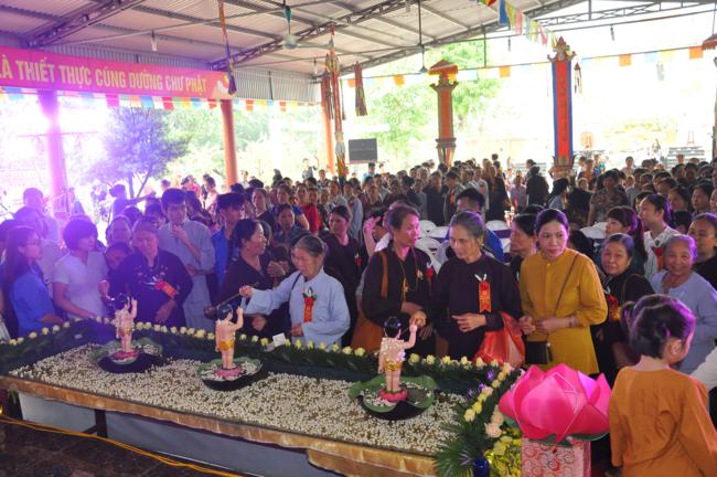 Trong giờ phút trang nghiêm và long trọng, sau khi cử hành xong nghi thức hành chính, chư Tôn đức và toàn thể hội chúng đã trang nghiêm thực hiện nghi lễ tụng kinh Phật đản truyền thống và làm lễ tắm Phật trong niềm hoan hỷ.