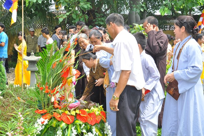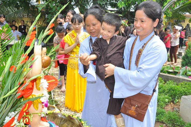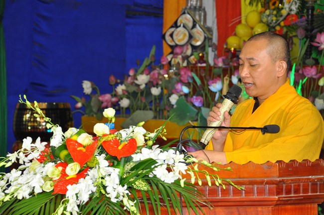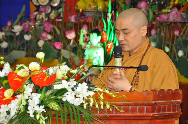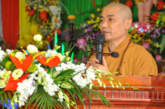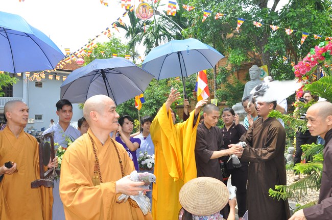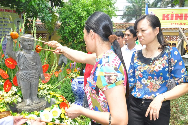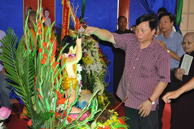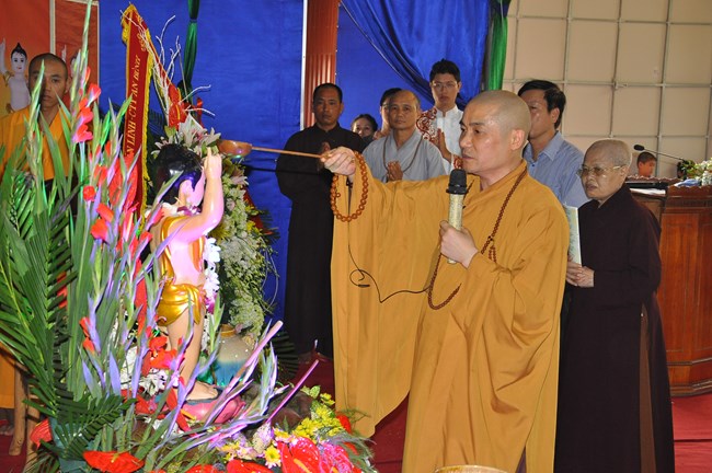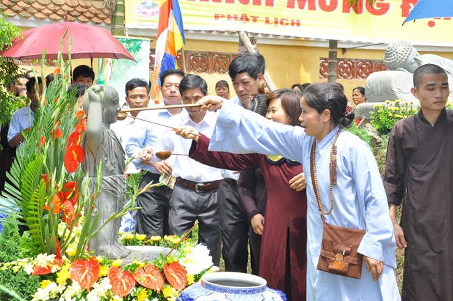 Trong dịp này, Thượng tọa Thích Tiến Đạt cũng đã có thời thuyết Pháp cho đại chúng về lịch sử ra đời của Đức Phật cũng như ý nghĩa của sự kiện linh thiêng và trọng đại này đối với Thế giới. Thượng Tọa cũng từ đó mà nói tới ý nghĩa của việc “Tắm Phật là tắm cho bản thân mỗi chúng ta” để gột rửa những điều xấu trong thâm tâm, cùng dập tắt “lửa tham, lửa sân, lửa si”, cùng nhau nuôi dưỡng “Phật tâm”, tiến tới những điều thiện, an lành trong tâm thức của mỗi con người. Qua đó, Thượng tọa cũng mong các Phật tử hãy tinh tấn để “thứ nhất tu tại gia, thứ hai tu chợ, thứ ba tu chùa”, cùng nhau nương vào ánh sáng của Như Lai “đưa chín cõi chúng sinh đến chỗ Chân – Thiện – Mĩ – Tuệ”. Cuối cùng, Thượng Tọa đã có lời khen tới Phật Giáo huyện Phúc Thọ đặc biệt là chùa Phúc Nghiêm đã “tổ chức được một Đạo Tràng thực sự đúng với tinh thần Phật Pháp đó làm nơi tu học cho các Phật tử” và Thượng Tọa cũng mong muốn Phật giáo huyện sẽ quan tâm hơn nữa tới các cháu thiếu nhi, các thanh thiếu niên, các mầm non tương lai của Đất nước đó cũng chính là mong mỏi của Đức Pháp Chủ đã gửi gắm qua bức thông điệp Phật đản năm nay.