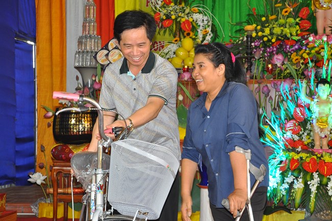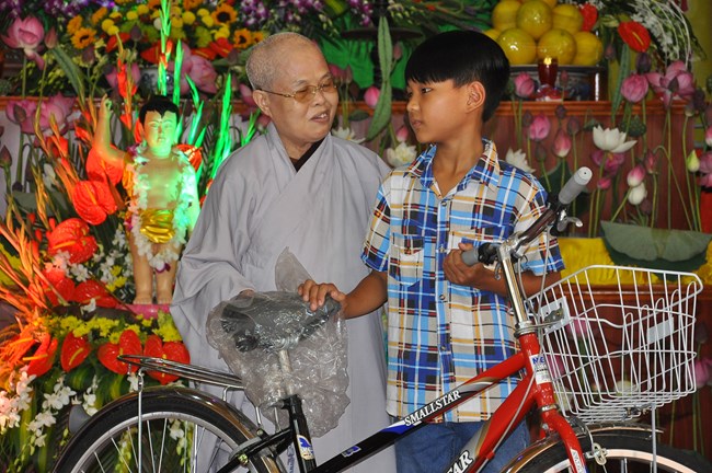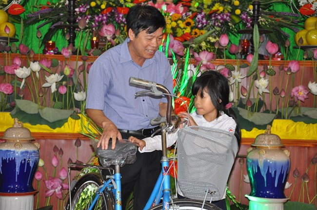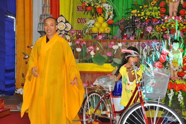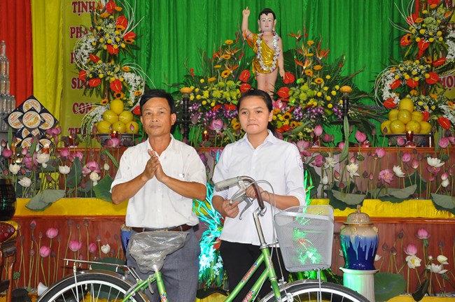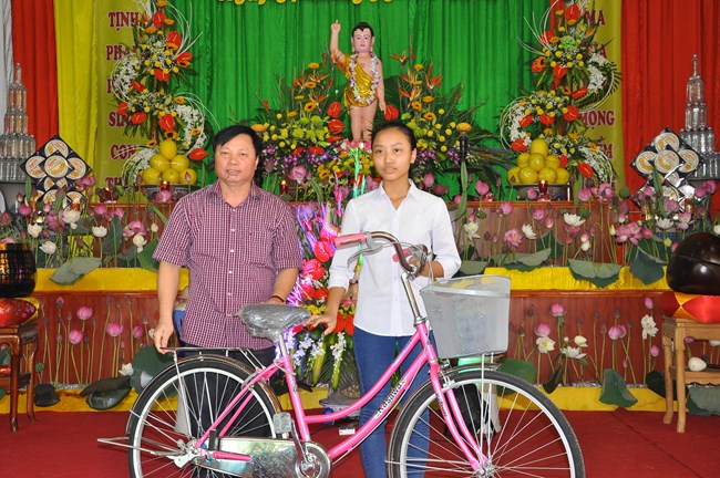 Đặc biệt trong dịp này, BTS GHPGVN huyện Phúc Thọ cũng đã có các phần quà là những chiếc xe đạp để gửi tới các hoàn cành, các cháu học sinh có hoàn cảnh khó khăn trong huyện, thực hiện thiết thực thông điệp “ban vui, cứu khổ” của đạo Phật.