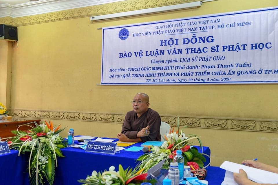 Tiếp đó, từ ngày 19 đến 21/5, tại cơ sở 1 của Học viện Phật giáo VN tại TP.HCM (Q.Phú Nhuận) đã diễn ra chương trình bảo vệ luận văn tốt nghiệp thạc sĩ cho 19 Tăng Ni Học viên đang theo học chương trình cao học.