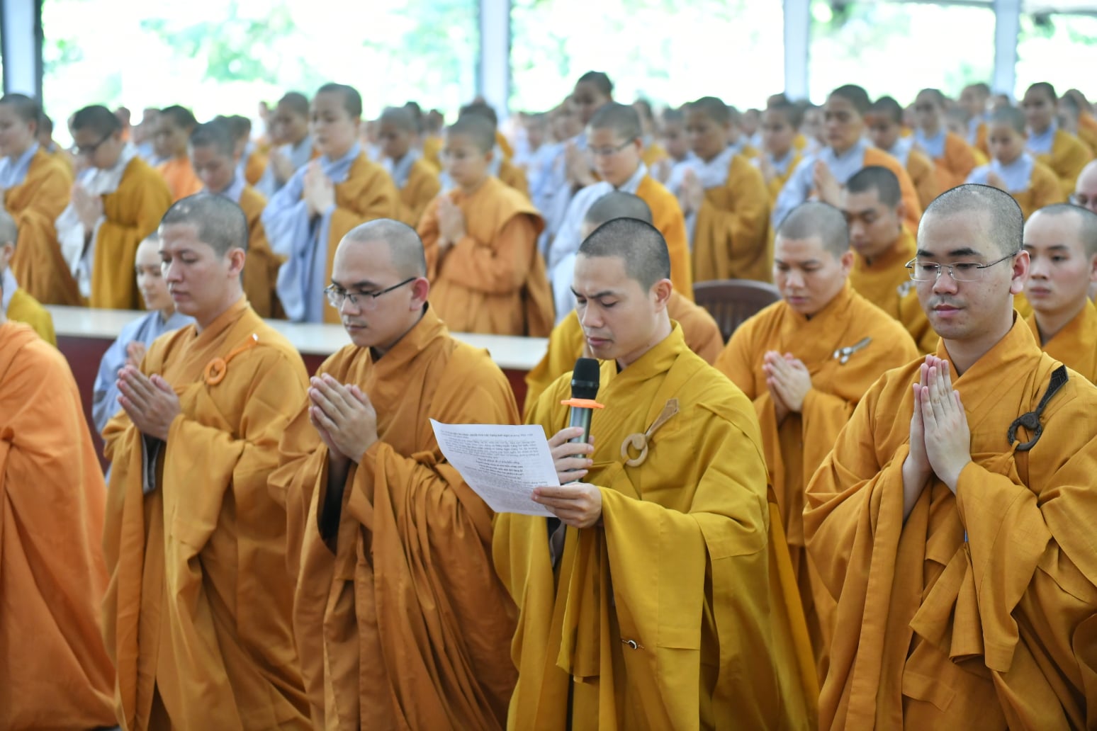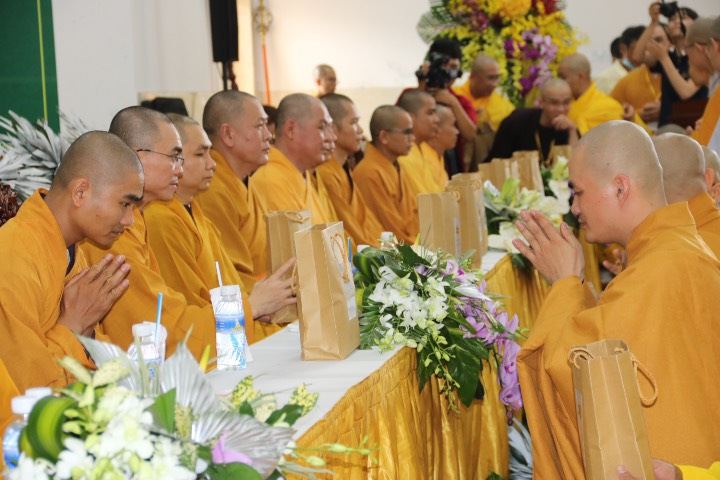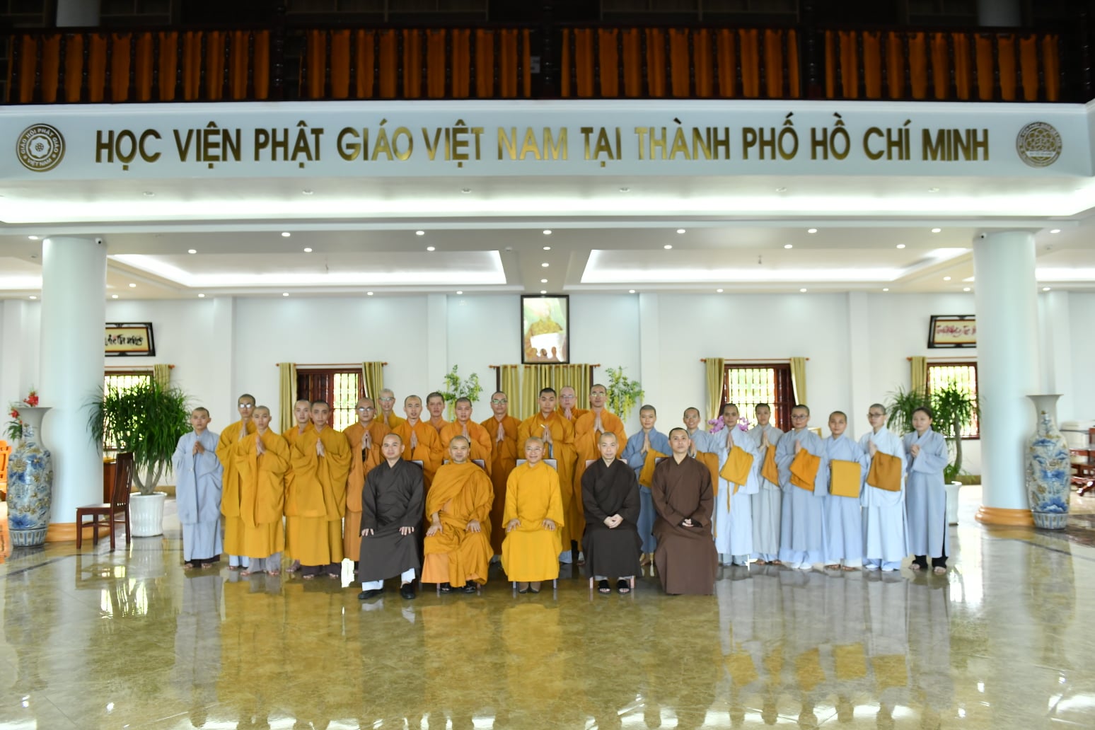 Buổi lễ được đặt dưới sự chứng minh của Trưởng lão HT. Thích Trí Quảng – Đệ nhất Phó Pháp chủ kiêm Giám luật HĐCM GHPGVN, Viện trưởng HVPGVN tại TP. HCM cùng sự tham dự của chư Tôn đức Hội đồng Điều hành Học viện, quý thầy cô giáo thọ, quý giảng viên và hơn 1200 Tăng Ni sinh các khóa XII, XIV, XV, Thạc sĩ, Tiến sĩ Phật học, nghiên cứu sinh các khóa.
