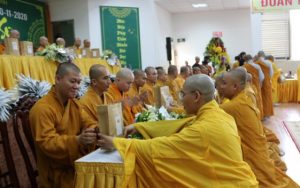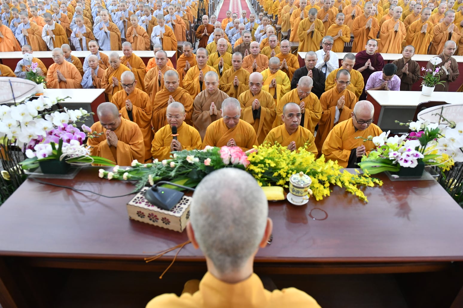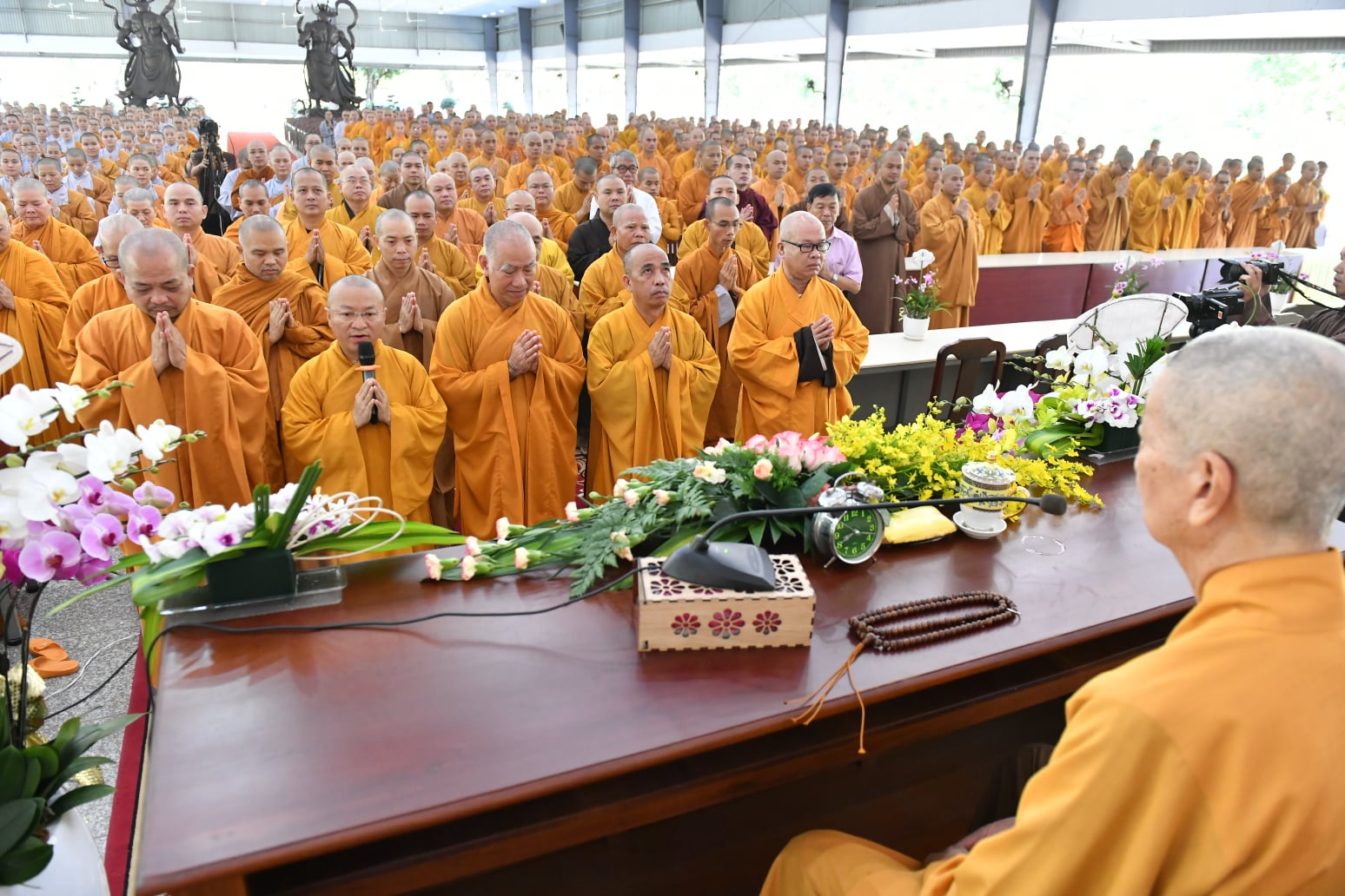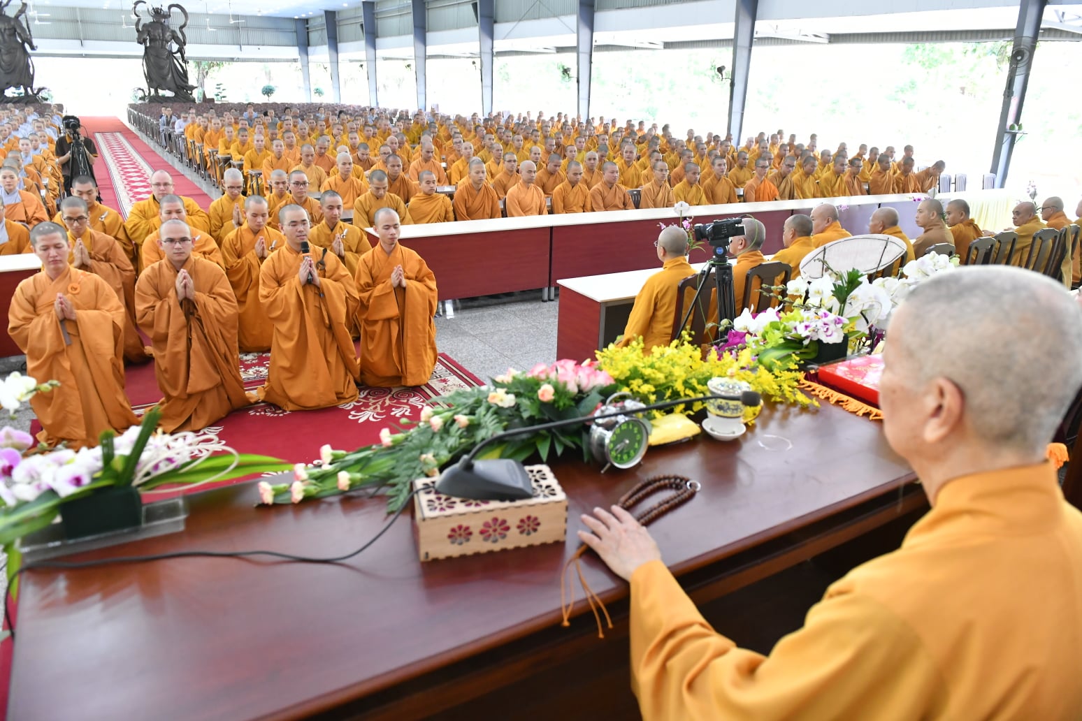 Buổi lễ được đặt dưới sự chứng minh của Trưởng lão HT. Thích Trí Quảng – Đệ nhất Phó Pháp chủ kiêm Giám luật HĐCM GHPGVN, Viện trưởng HVPGVN tại TP. HCM cùng sự tham dự của chư Tôn đức Hội đồng Điều hành Học viện, quý thầy cô giáo thọ, quý giảng viên và hơn 1200 Tăng Ni sinh các khóa XII, XIV, XV, Thạc sĩ, Tiến sĩ Phật học, nghiên cứu sinh các khóa.