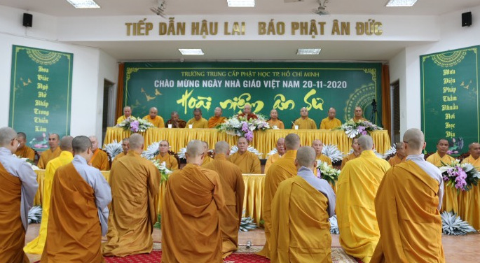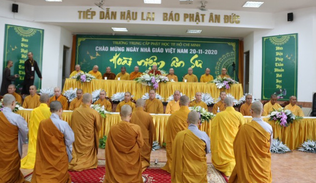Cùng ngày tại Trường Trung cấp Phật học TP.HCM cũng long trọng tổ chức ngày lễ nhà giáo tri ân chư tôn đức Giáo thọ sự đã tận tình hướng dẫn dạy cho Tăng Ni sinh đang theo học tại đây trong nhiều khóa.