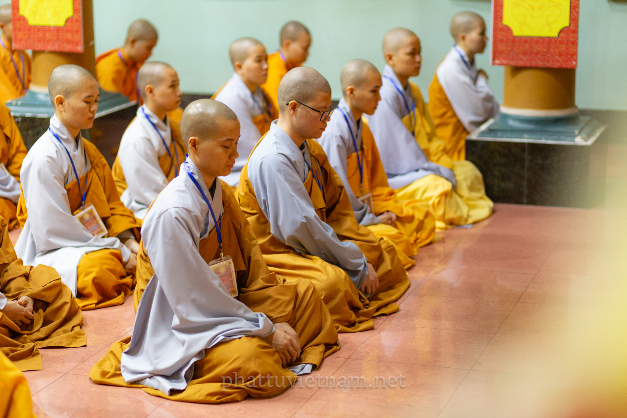 Các vị phải đem tâm thanh tịnh tinh tấn học tập để phát sanh trí tuệ, từ đó chuyên tu chánh niệm phước đức đầy đủ mới thành tựu chí nguyện xuất gia của mình theo tiến trình VĂN – TƯ – TU – (nghe, suy niệm, tu tập).