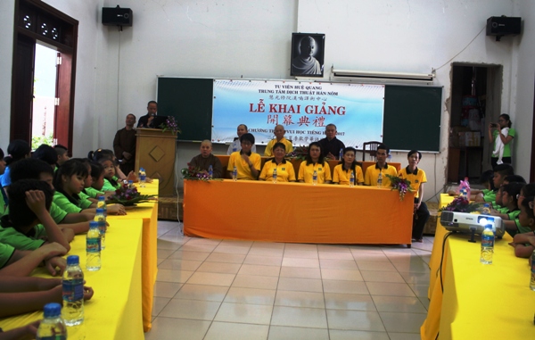 Được biết, Chương Trình Ngoại khóa Mùa mùa hè 2017 – “Vui Học tiếng Hoa” lần II do HT.Thích Minh Cảnh – Giám Đốc Trung Tâm Dịch Thuật Hán Nôm Huệ Quang chủ trương thực hiện. Khóa học này có sự tham gia giảng dạy của chư giáo thọ sư: ĐĐ. Thích Quảng Thiện; ĐĐ. Thích Giác Nhường; ĐĐ.Thích Minh Thuận; ĐĐ. Thích Tịnh Đức; ĐĐ.Thích Trí Đức; ĐĐ.Minh Tôn; SC. Thánh Tâm; GV. Hàn Hồng Diệp; GV: Từ Hồi Khen; GV: Trịnh Chí Nhiên; GV. Tạ Kim Khai; GV: Tô Thục; Nhà Báo Hoàng Kim; GV: Nguyễn Thanh Trọng…