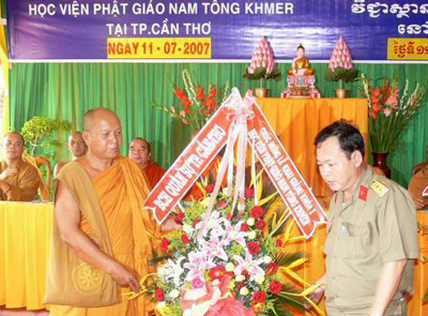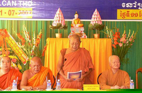 Hòa thượng Danh Nhưỡng – Viện trưởng Học viện Phật giáo Nam tông Khmer phát biểu chào mừng