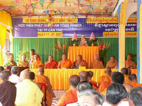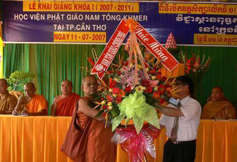 Thượng tọa Đào Như – Phó Viện trưởng kiêm Tổng thư ký Hội đồng điều hành Học viện Phật giáo Nam tông Khmer báo cáo công tác chiêu sinh khóa I