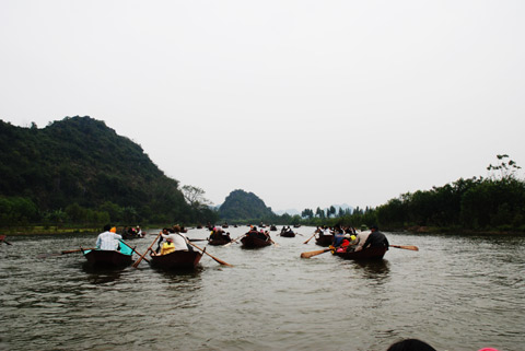 Ra quân phục vụ từ 5h sáng mùng 2 Tết, đúng như lời hứa của Ban tổ chức lễ hội, năm nay, công tác phục vụ lễ hội được tổ chức quy củ hơn. Đi dọc quốc lộ 21- B thấy rất ít dân đò chèo kéo, mời mọc làm phiền du khách.