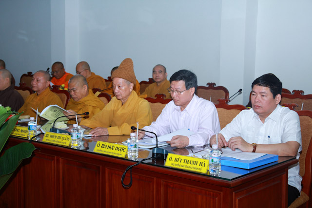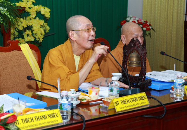 Hội nghị dưới sự chủ trì của HT.Thích Chơn Thiện, HT.Thích Thanh Nhiễu, đồng Phó Chủ tịch Thường trực HĐTS GHPGVN; HT.Thích Thiện Nhơn, Phó Chủ tịch Thường trực kiêm Tổng Thư ký HĐTS TW GHPGVN.