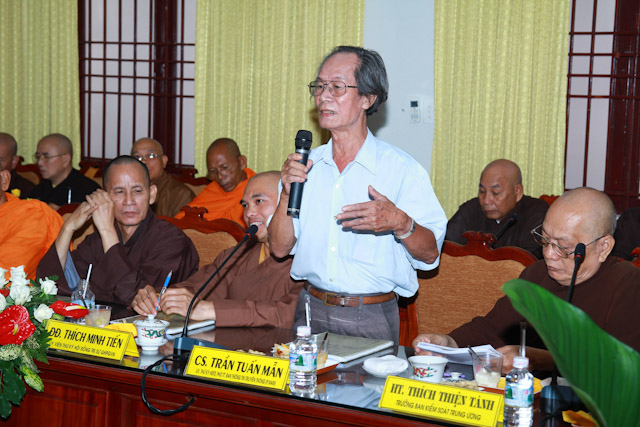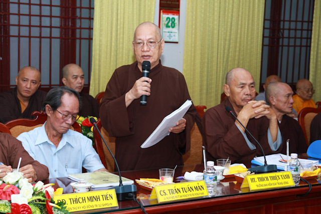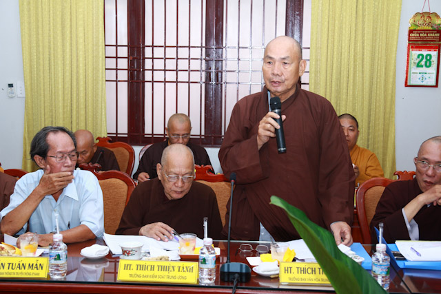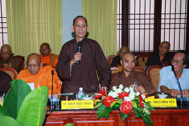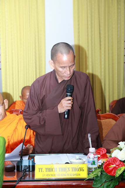 TT. Thích Thiện Thống phát biểu đóng góp về vấn đề quản lý cơ sở chùa thuộc di tích văn hóa cấp quốc gia cũng như việc đăng tải đưa tin của các báo chí trên các phương tiện truyền thông, cần được quản lý chặt chẽ, trung thực, để tránh các hệ quả ảnh không tốt đối với cá nhân cũng tập thể của Phật giáo.