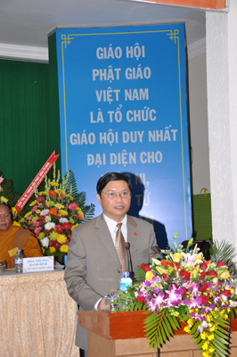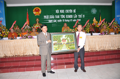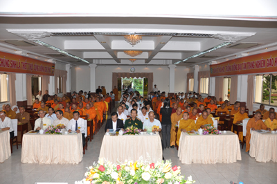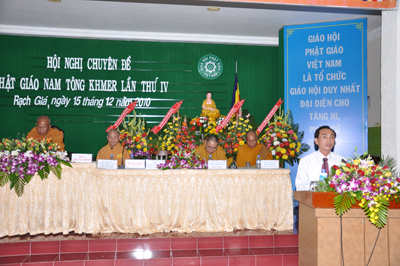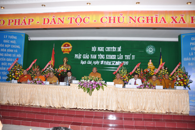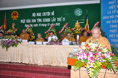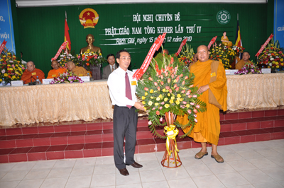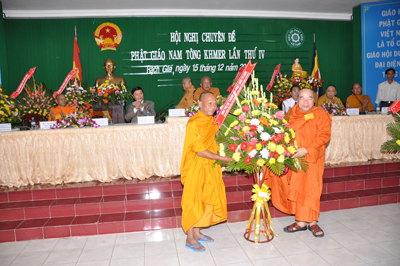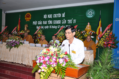 Đại diện tỉnh Kiên Giang, ông Đặng Công Huẩn – Phó Chủ tịch UBND tỉnh phát biểu, nêu rõ đặc điểm, thành tựu của Phật giáo Nam tông Khmer tại tỉnh nhà, tin tưởng "Quý vị Sư sãi và đồng bào Phật tử sẽ tiếp tục phát huy hơn nữa tinh thần yêu nước, phụng đạo giúp đời như lịch sử đã từng ghi nhận; thời kỳ nào cũng có các nhà sư giúp đời, hộ quốc an dân, tiếp tục đẩy mạnh sự nghiệp “Hoằng dương chánh pháp, lợi lạc quần sanh”, không ngừng nỗ lực tu dưỡng trí huệ và đạo đức, ra sức thực hiện nghĩa vụ công dân, khắc phục những mặt hạn chế trong việc đạo, việc đời, đề cao tinh thần hòa hợp của Phật giáo, tăng cường khối đại đoàn kết toàn dân tộc, đoàn kết tôn giáo, vì mục tiêu “cứu khổ chúng sanh”, góp phần xây dựng chân – thiện – mỹ ”.
