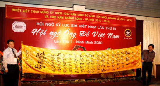 7. Hội ngộ Ông Đồ Việt Nam lần thứ nhất – cuộc hội ngộ triển lãm tranh thư pháp Việt nhiều nhất – Đơn vị : Sở Văn hóa Thể thao và Du lịch tỉnh Ninh Bình.