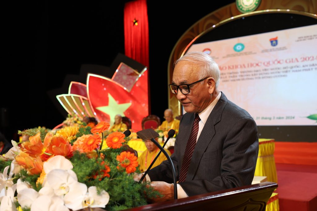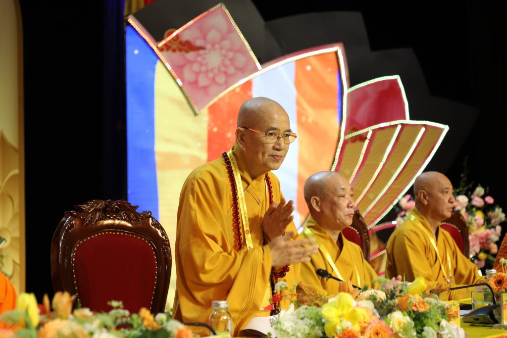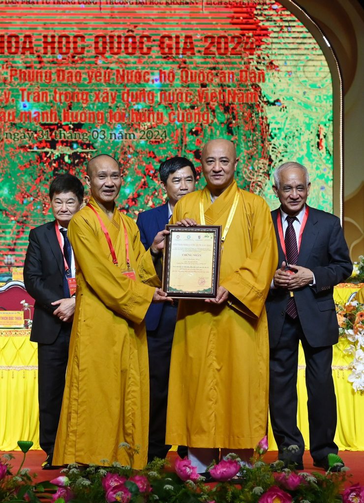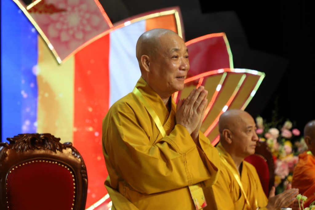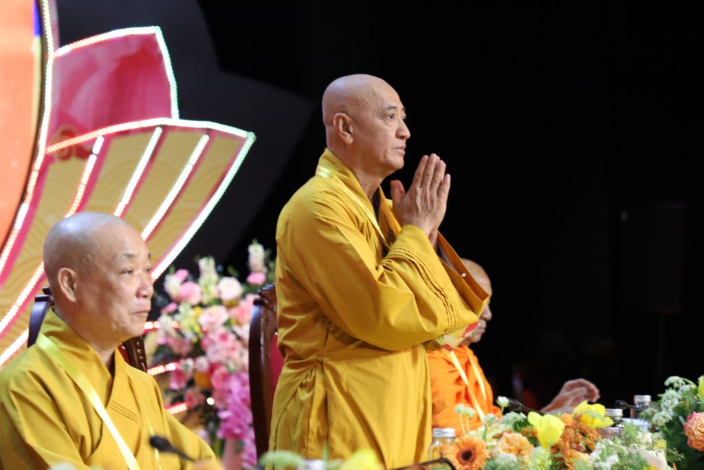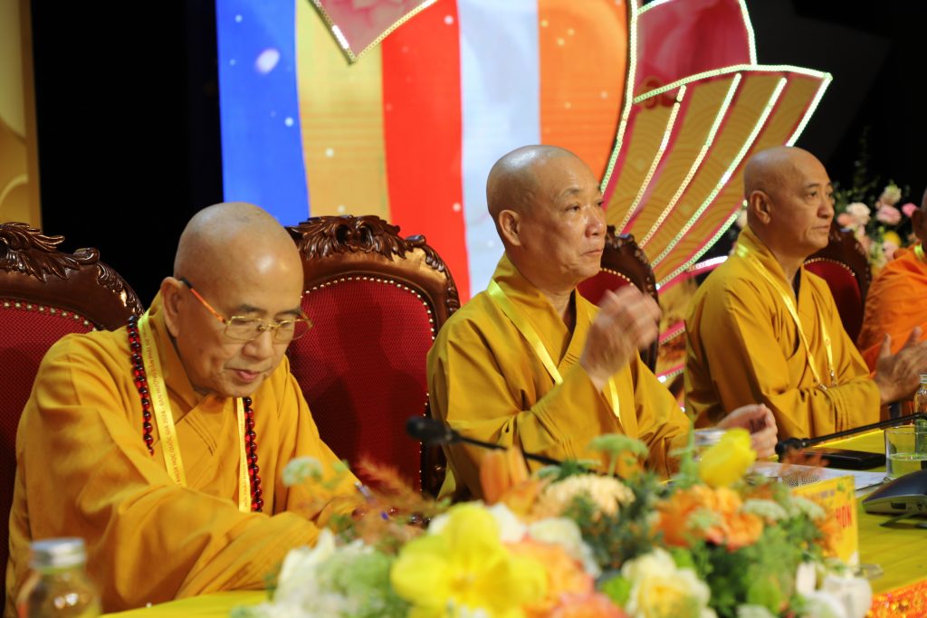 TT.Thích Đức Thiện – Phó chủ tịch HĐTS GHPGVN – Tổng thư ký HĐTS GHPGVN đọc thư chúc mừng của Đức pháp chủ GHPGVN tới Hội thảo. Đức pháp chủ GHPGVN nhấn mạnh: “Trước hết, tôi tán dương công đức Ban Hướng dẫn Phật tử Trung ương Giáo hội Phật giáo Việt Nam đã tổ chức Hội thảo khoa học quốc gia với chủ đề “Phát huy truyền thống “Phụng Đạo yêu Nước, hộ Quốc an Dân” của Phật giáo thời kỳ Lý, Trần trong xây dựng nước Việt Nam phát triển, giàu mạnh hướng tới hùng cường”.