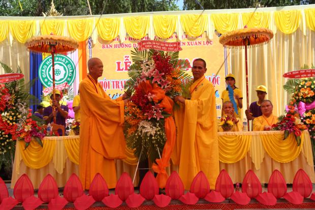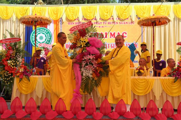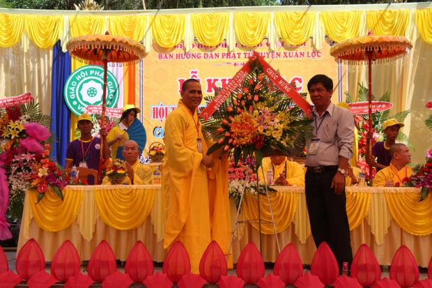 Tại buổi lễ, BTS GHPGVN huyện Xuân Lộc cùng các ban ngành trong BTS GHPGVN huyện, các cấp chính quyền đã tặng những lẵng hoa tươi thắm chúc mừng hội trại.