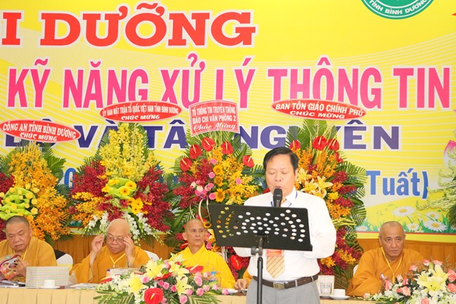 Đại diện chính quyền, Ông Trần Đức Thịnh, Phó Giám đốc Sở Nội vụ, Trưởng Ban Tôn giáo tỉnh Bình Dương, phát biểu chúc mừng khóa bồi dưỡng diễn ra thành công tốt đẹp.