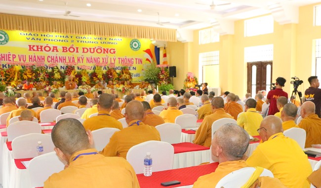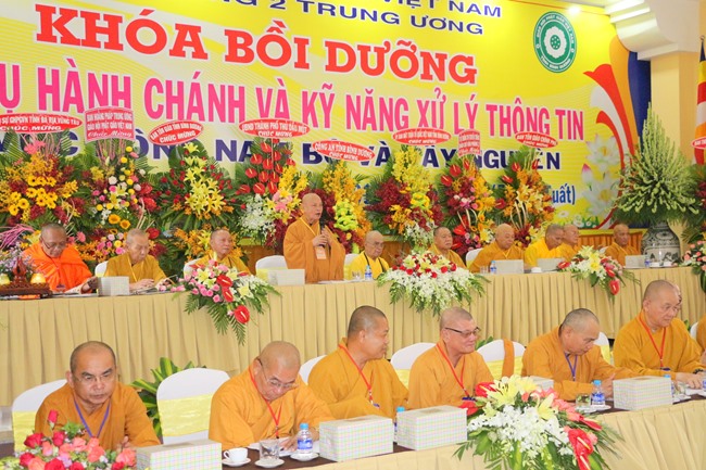 Ban đạo từ đến các học viên, HT.Thích Thiện Nhơn, Chủ tịch HĐTS TƯ GHPGVN nhấn mạnh: Đây là một môi trường tốt cho Tăng Ni, Phật tử đang phục vụ Văn phòng Giáo hội của Phật giáo các địa phương, trong đó có Ban Thông tin – Truyền thông rèn luyện kỹ năng, nắm bắt các kiến thức mới liên quan tới hành chánh Giáo hội.