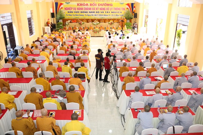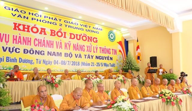 Sáng ngày 04-07-2018 (nhằm ngày 21-05-Mậu Tuất), tại hội trường Chùa Hội An, Trụ sở Ban Trị sự GHPGVN tỉnh Bình Dương (phường Hòa Phú, Tp. Thủ Dầu Một, tỉnh Bình Dương) đã diễn ra lễ khai mạc Khóa Bồi dưỡng Nghiệp vụ Hành chánh và Kỹ năng Xử lý Thông tin Khu Vực Đông Nam Bộ và Tây Nguyên.