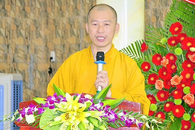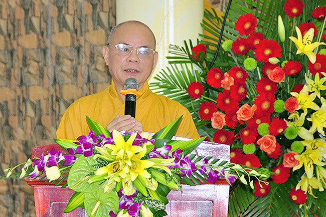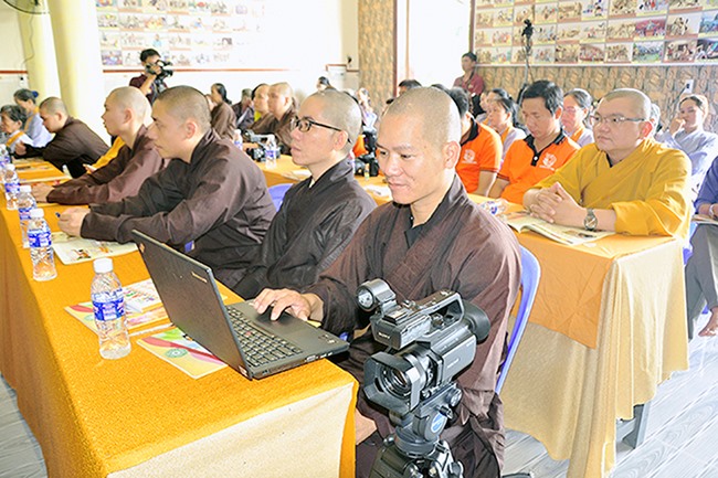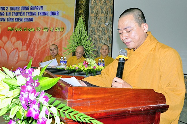 TT Thích Minh Nhẫn thay lời BTC báo cáo chương trình khoá tập huấn, ban giảng huấn hướng dẫn giảng dạy, truyền trao những kinh nghiệm cũng như các kỷ năng trong trong lĩnh vực công tác Thông tin – Truyền thông và Công tác hành chánh văn phòng. BTC đã bố trí nơi ăn và chổ nghỉ cho các khoá viên của các tỉnh trở về tham dự khoá tập huấn.