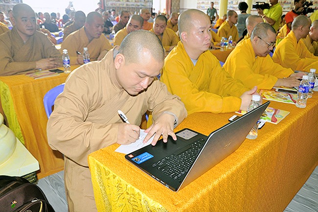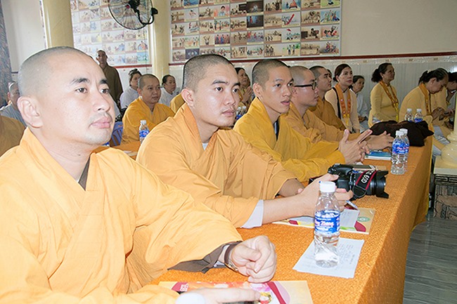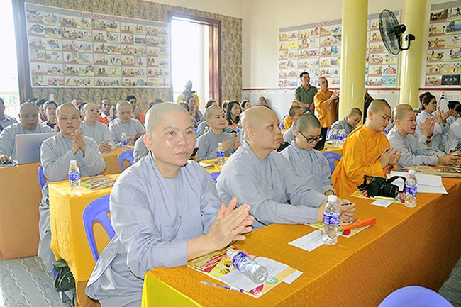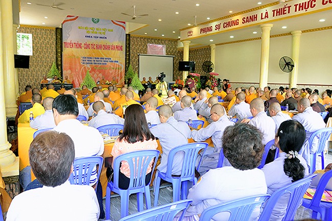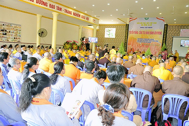 Chứng minh tham dự cao quý của Đức HT Thích Thiện Nhơn – Chủ tịch Hội Đồng Trị Sư TW GHPG VN, HT Thích Thiện Đức – Phó trưởng Ban Kiếm soát TW GHPGVN, HT Thích Tấn Đạt – UV Thư Ký HĐTS, Phó thường trực Ban Hoằng Pháp TW GHPGVN, HT Thích Danh Đổng – UV HĐTS TW HPGVN, Trưởng BTS GHPGVN tỉnh Kiên Giang, HT Thích Minh Thiện – UV HĐTS, Phó Ban Hoằng Pháp – Trưởng giảng sư đoàn Ban hoằng pháp TW, Trưởng BTS GHPGVN tỉnh Long An, TT. Thích Đạo Phước, UV HĐTS, Phó trưởng Ban Thường trực Ban TTTT TW, TT Thích Minh Nhẫn – UV HĐTS, Phó Ban Hoằng Pháp TW, Phó ban Thường trực BTS GHPG VN tỉnh Kiên Giang, cùng chư tôn đức Tăng ni học viên hơn 105 vị đã trở về tham dự khoá tập huấn.