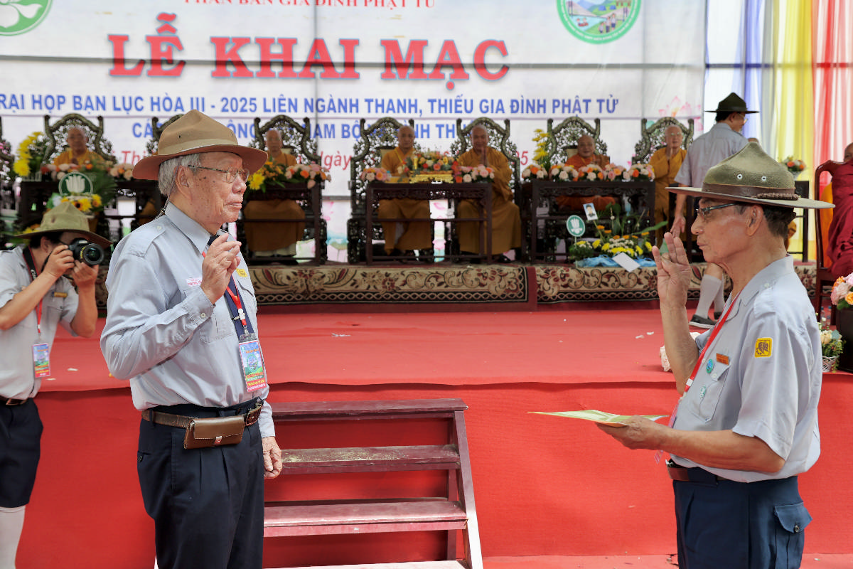 Thay mặt Ban Quản trại, huynh trưởng cấp Dũng Thị Bá – Huỳnh Văn Tùng trao còi lệnh, gởi gắm nhiệm vụ sinh hoạt đến Trưởng khối sinh hoạt huynh trưởng cấp Tấn Tâm Đạo – Trần Văn Hồng; trại sinh đồng hòa nhịp cất vang lời bài hát “Lục Hoà Đông Tây Hành khúc”là Trại ca Lục Hòa III – năm 2025.