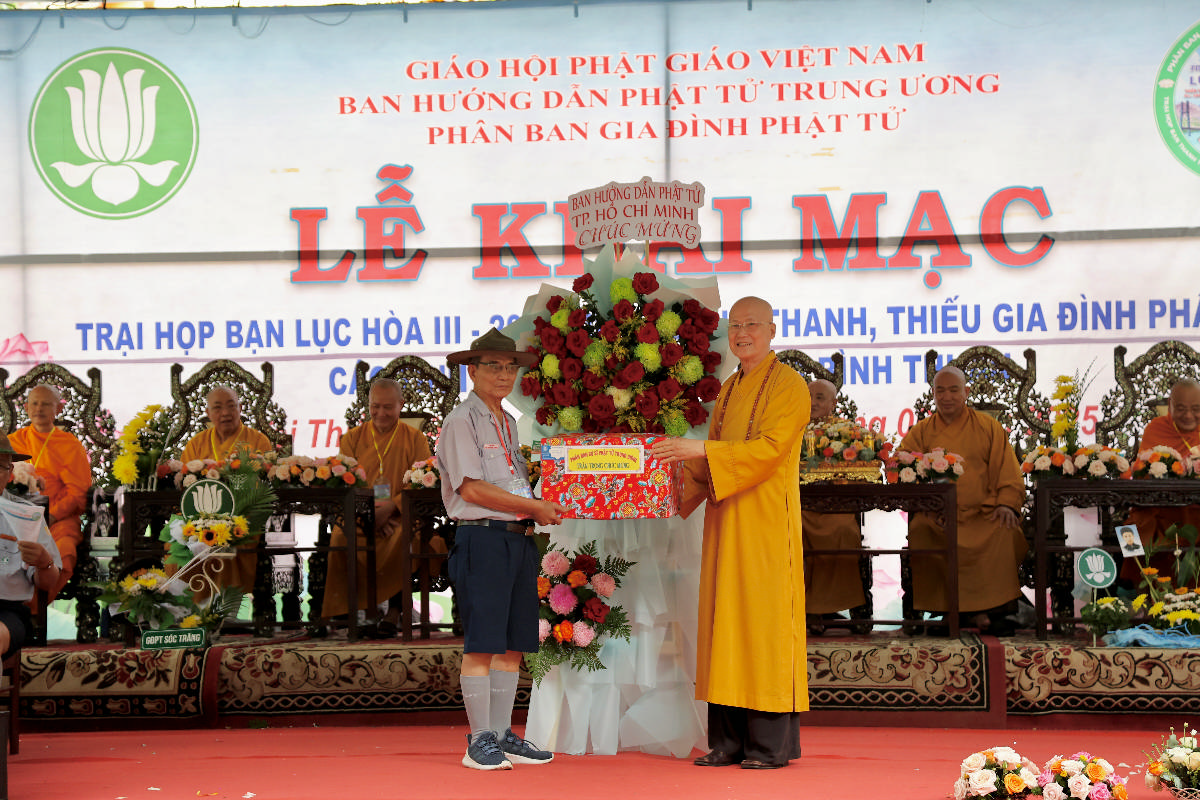 Chứng minh lễ khai mạc có Hòa thượng Thích Huệ Thông, Phó Chủ tịch Hội đồng Trị sự; Hòa thượng Thích Bửu Chánh, Ủy viên Thư ký Hội đồng Trị sự, Phó Trưởng ban Thường trực Ban Trị sự GHPGVN tỉnh Đồng Nai, trụ trì thiền viện Phước Sơn; Thượng tọa Thích Phước Nguyên, Phó tổng Thư ký kiêm Chánh Văn phòng 2 T.Ư; Thượng tọa Thích Phước Nghiêm, Ủy viên Thường trực Hội đồng Trị sự, Phó Thường trực Ban Hướng dẫn Phật tử T.Ư; Thượng tọa Thích Huệ Khai, Ủy viên Thường trực Hội đồng Trị sự, Trưởng Ban Trị sự GHPGVN tỉnh Đồng Nai; Hòa thượng Thích Chơn Không, Phó ban Hướng dẫn Phật tử T.Ư; Thượng tọa Thích Quảng Tiến, Phó ban kiêm Chánh Thư ký Ban Hướng dẫn Phật tử T.Ư; Hòa thượng Thích Minh Nhật, Trưởng ban Trị sự GHPGVN tỉnh Bình Thuận, chư tôn đức Ban Hướng dẫn Phật tử T.Ư, đại diện miền Đông Tây Nam Bộ, Bình Thuận, chư Tăng thiền viện Phước Sơn tham dự.