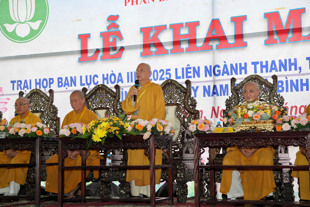 Hòa thượng Thích Huệ Khai, Trưởng Ban Trị sự GHPGVN tỉnh Đồng Nai ban lời huấn từ mong toàn thể trại sinh khi về tham gia kỳ trại sẽ cố gắng thể hiện mình là người Phật tử học sâu hiểu rộng về giáo lý Đức Phật để truyền đạt lại cho các em trẻ hơn, để xứng đáng là người đệ tử của đức Phật.