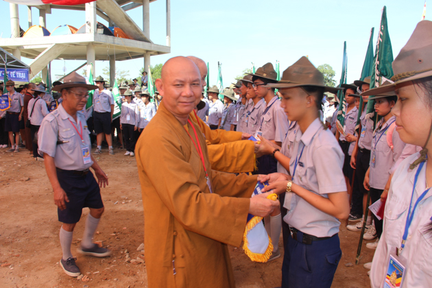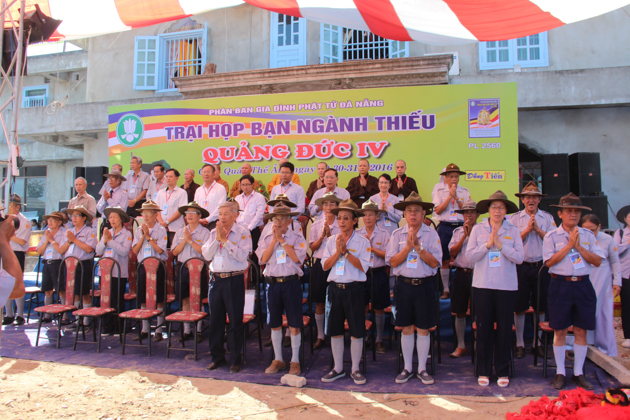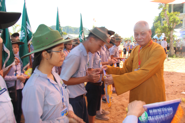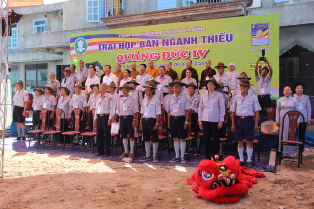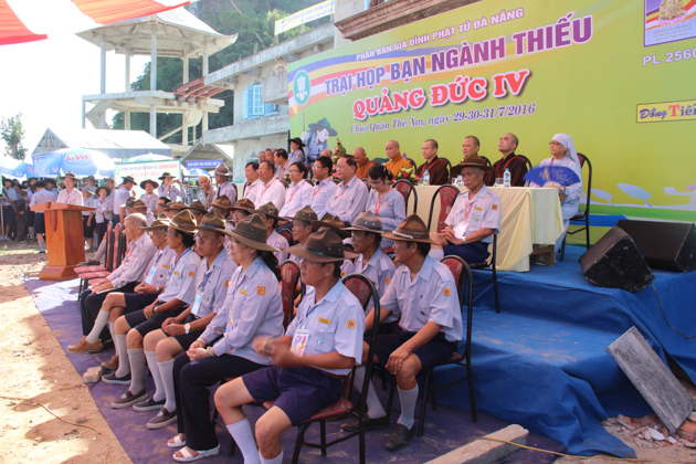 Quang lâm chứng minh và tham dự khai mạc trại có HT. Thích Thiện Toàn – UV HĐTS GHPGVN, Phó BTS kiêm Trưởng BHDPT GHPGVN Tp Đà Nẵng; TT. Thích Huệ Vinh – UV BTS GHPGVN Tp Đà Nẵng, Trưởng BTS GHPGVN quận Ngũ Hành Sơn, Trú trì chùa Quán Thế Âm; ĐĐ. Thích Thông Đạo – UV HĐTS GHPGVN, Phó ban kiêm Chánh thư ký BTS GHPGVN Tp Đà Nẵng cùng Chư Tôn đức Tăng Ni trên địa bàn Tp.