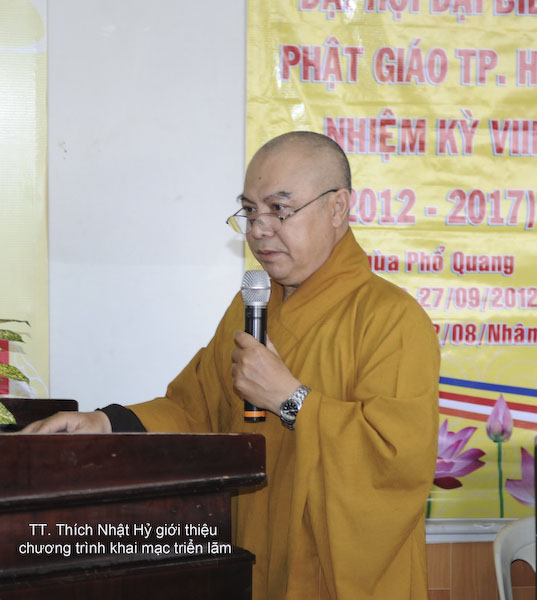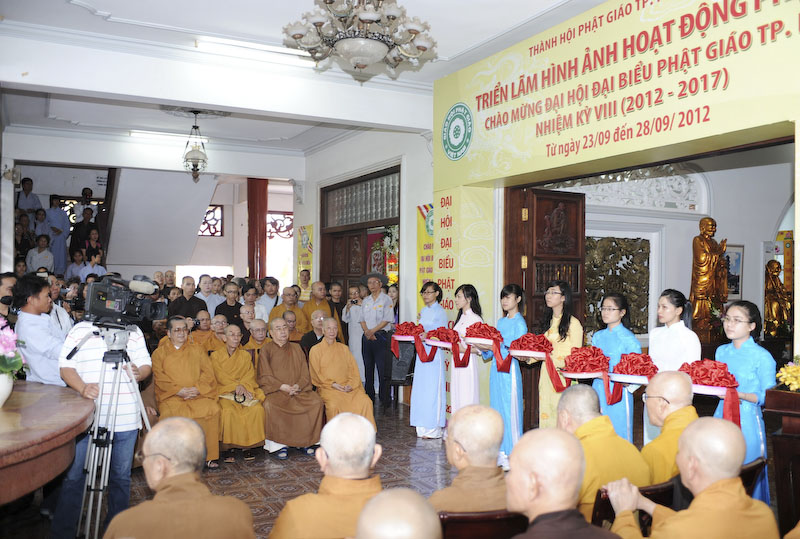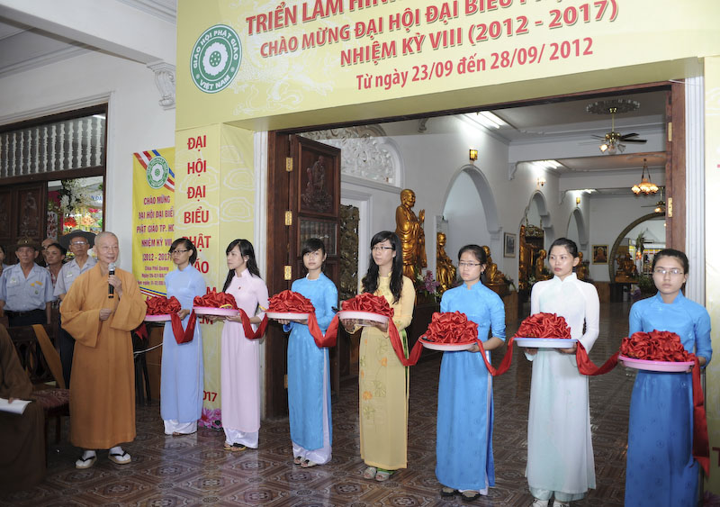 Đúng 08g30, HT. Thích Trí Quảng thay mặt Ban Trị sự Phật giáo thành phố ban đạo từ và cùng chư Tôn đức Giáo phẩm trong Ban Trị sự Thành hội cắt băng khai mạc phòng triển lãm. Triển lãm mở cửa từ ngày 23 tháng 9 đến ngày 28 tháng 9 năm 2912.