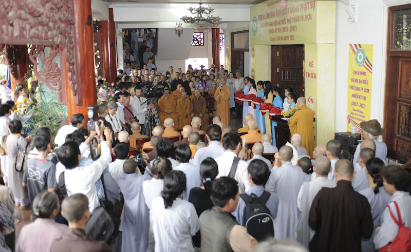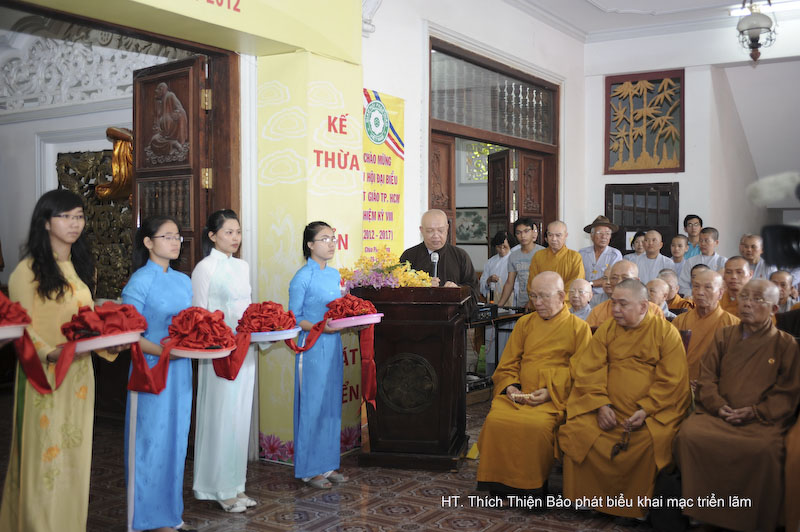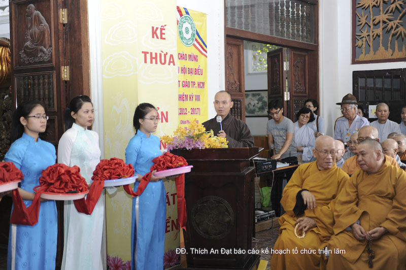 Mở đầu buổi Lễ, HT. Thích Thiện Bảo, Trưởng Ban Văn hóa Thành hội phát biểu và tuyên bố khai mạc triển lãm. Tiếp theo, ĐĐ. Thích An Đạt thông báo kế hoạch tổ chức triển lãm hình ảnh hoạt động Phật sự và văn hóa phẩm Phật giáo được ấn hành trong nhiệm kỳ vừa qua tại TP. Hồ Chí Minh. Có 50 đơn vị tham gia triển lãm gồm Ban Đại diện Phật giáo 24 Quận, Huyện; 13 Ban, Phân Ban, Tổ của Thành hội; 09 ngôi chùa hoạt động từ thiện xã hội, văn hóa và 04 đơn vị hoạt động báo chí, truyền thông.