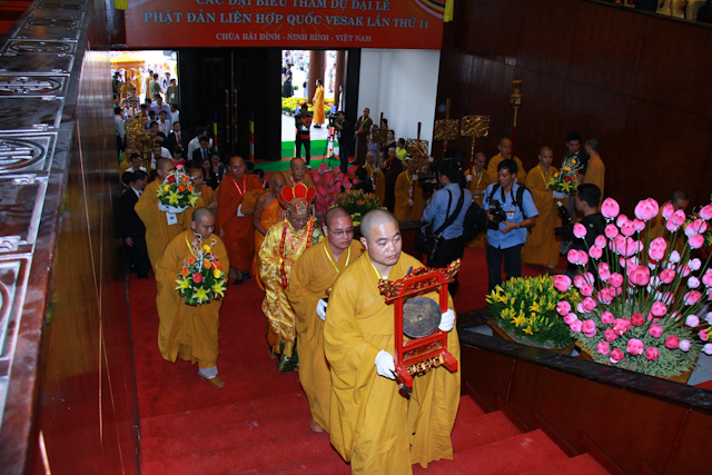 Phiên khai mạc Vesak 2014 đã kết thúc trong thành công rực rỡ, trong niềm hoan hỷ vô biên của tất cả người tham dự. Theo BTC, chương trình sẽ được tiếp tục vào lúc 13 giờ 30 chiều cùng ngày, bao gồm các nội dung như nghi lễ Tam bảo do Phật giáo Sri Lanka và Tibetan Chanting thực hiện. Sau đó là phần thuyết trình của HT. Thích Đức Nghiệp, phát biểu đặc biệt của GS. TS Phạm Dũng, Thứ trưởng bộ nội vụ, Trưởng ban Tôn giáo Chính phủ, phát biểu của Thứ trưởng cục Tôn giáo Trung Quốc, thông điệp của Thủ tướng Australia, thông điệp của đức Tăng thống Thái Lan, Tăng thống Campuchia, thông điệp của Trưởng dòng truyền thừa Drukpa Gyalwang Drukpa, thông điệp của chủ tịch Liên minh Phật giáo Lào, Phật giáo Myanmar, Liên minh Phật giáo Ấn Độ, bài thuyết trình của GS. TS Damien Keown; “Vai trò của Phật giáo trong xây dựng hòa bình” và một số thông điệp của các tổ chức Phật giáo và đại sứ các nước.
