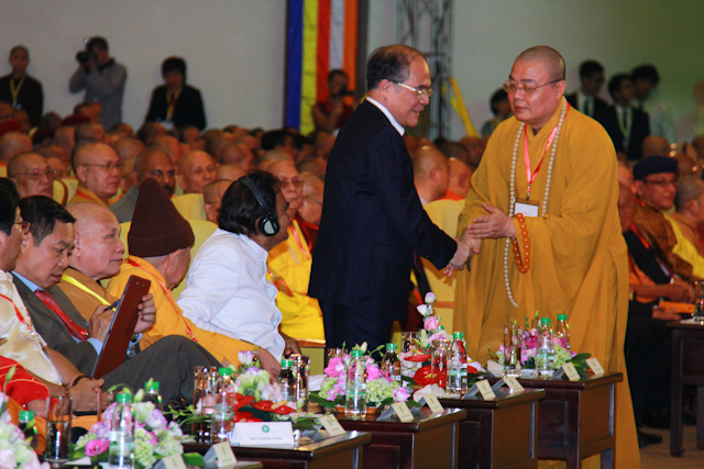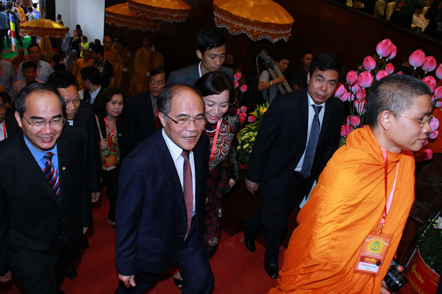 Về phía lãnh đạo đảng, nhà nước có sự tham dự của Chủ tịch Quốc hội Nguyễn Sinh Hùng, Chủ tịch UBTW MTTQVN Nguyễn Thiện Nhân, tổng Bí thư Lê Khả Phiêu, Nguyên chủ tịch Quốc hội Nguyễn Văn An, Thứ trưởng bộ nội vụ, Trưởng ban Tôn giáo Chính phủ, GS. TS Phạm Dũng, các lãnh đạo đảng, nhà nước, nguyên thủ quốc gia các nước. Về phía đại biểu khách quốc tế có sự tham dự của Disanayaka Mudiyanselage Jayaratne, Thủ tướng Sri Lanka, Pratibha Mehta, điều phối viên thường trú LHQ tại Việt Nam, Tiến sĩ Katherine Muller Marin, động đảo các vị Tăng thống, lãnh đạo Phật giáo các nước cùng tham dự.