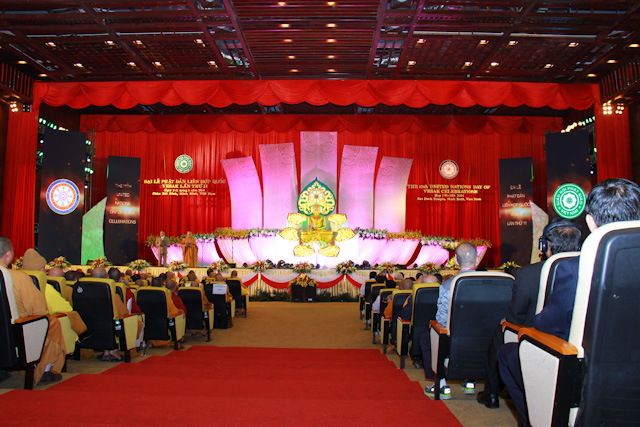 Buổi lễ có sự hiện diện của HT. Thích Đức Nghiệp, phó Pháp chủ HĐCM, GHPGVN, HT. Thích Thiện Nhơn, Phó chủ thịch thường trực kiêm Tổng thư ký GHPGVN,HT. Thích Thanh Nhiễu – phó Chủ tịch TT HĐTS GHPGVN kiêm Chủ tịch Ủy ban Tổ chức Quốc tế Đị lễ Phật đản LHQ tại Việt Nam, HT. Thích Chơn Thiện, Phó Chủ tịch TT HĐTS GHPGVN, HT.Brahamapundit; Chủ tịch ICDV, Chư tôn đức Hòa thượng Phó Chủ tịch HĐTS GHPGVN, hơn 3500 đại biểu vào trong hội trương chính, trong đó có hơn 1100 đại biểu khách Quốc tế trên 95 quốc gia và hơn 2400 đại biểu trong nước gồm chư tôn đức giáo phẩm HĐCM, HĐTS, chư vị giáo phẩm tiêu biểu, đại diện các ban, ngành, viện Trung ương, BTS Phật giáo các tỉnh, thành phố; đại diện các cộng đồng, tổ chức thuộc GHPGVN ở nước ngoài; đại biểu khách mời và hàng trăm ngànTăng Ni, Phật tử thủ đô và các tỉnh thành đã đến dự.