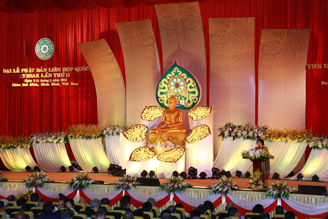 10 giờ 20 phút, bà Pratibha Mehta, điều phối viên thường trú LHQ tại Việt Nam đại diện Tổng thư LHQ Ban Ki Moon đọc thông điệp Phật đản: “Tôi đặc biệt hoan nghênh chủ đề của Đại lễ Vesak lần này tại Việt Nam và mong muốn quý vị trong việc khám phá những quan điểm Phật giáo nhằm đạt được các Mục tiêu Phát triển Thiên niên kỷ. Vì những lời dạy của Đức Phật có giá trị vĩnh cửu, nên trong thời đại ngày nay quan điểm Phật giáo vẫn có giá trị khi chúng ta thúc đẩy nỗ lực để đạt được các Mục tiêu Phát triển Thiên niên kỷ và đưa thế giới vào một con đường phát triển công bằng và bền vững hơn”.