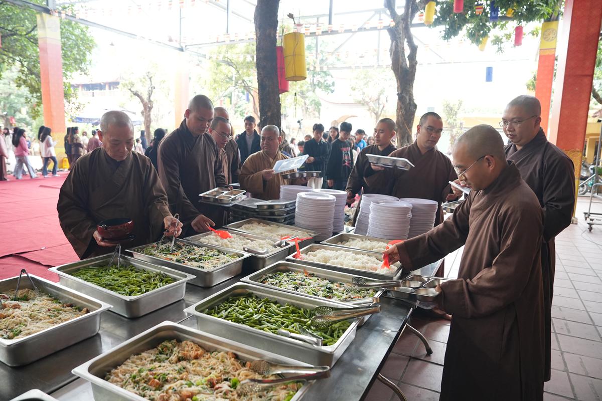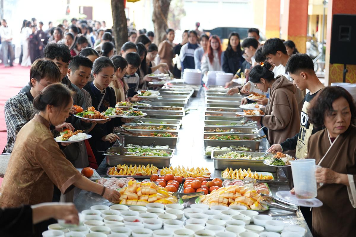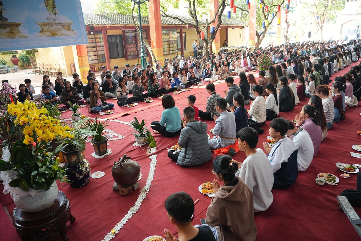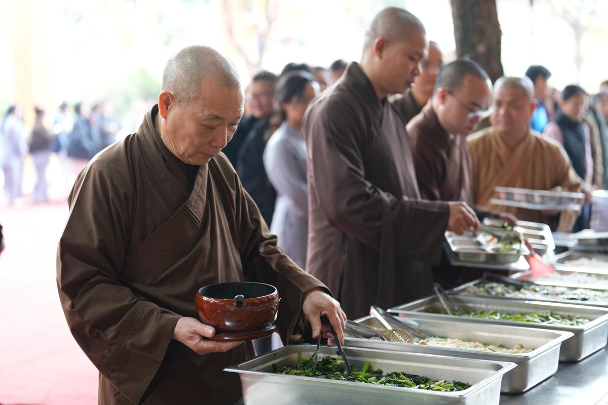 Trước giờ phút chia tay, đại chúng cùng quây quần bên nhau trong bữa cơm chay thân mật đầu tiên của năm mới – bữa cơm chan chứa tình thầy trò, tình huynh đệ. Không chỉ là bữa ăn nuôi dưỡng thân thể, đó còn là sự tiếp nối đẹp đẽ của văn hóa sum họp, của nếp sống gia đình và truyền thống tâm linh Phật giáo: cùng ngồi lại, cùng lắng nghe, cùng chia sẻ và nuôi dưỡng hiểu thương trong từng cử chỉ nhỏ.