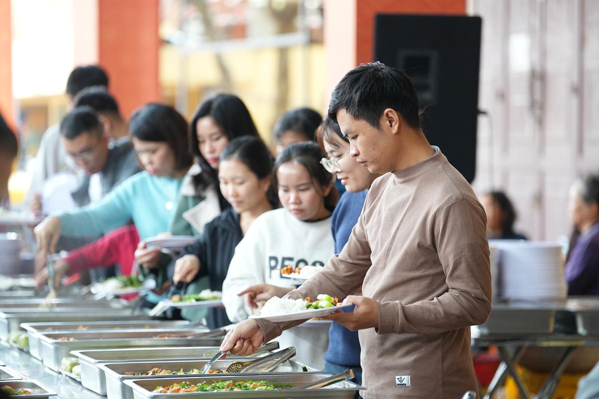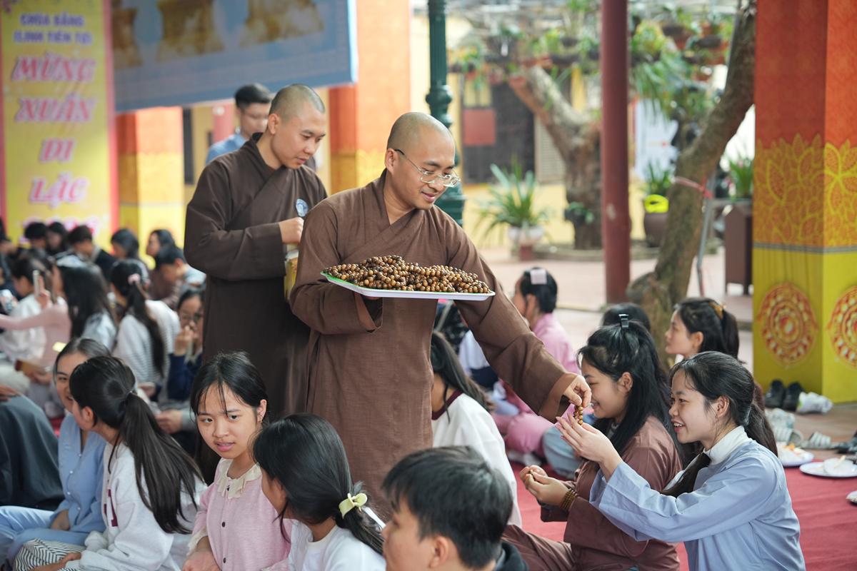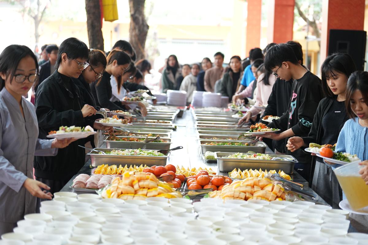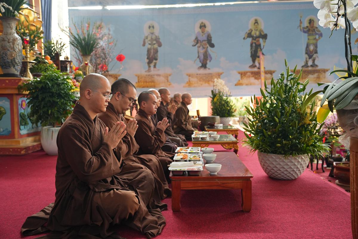 Trước giờ phút chia tay, đại chúng cùng quây quần bên nhau trong bữa cơm chay thân mật đầu tiên của năm mới – bữa cơm chan chứa tình thầy trò, tình huynh đệ. Không chỉ là bữa ăn nuôi dưỡng thân thể, đó còn là sự tiếp nối đẹp đẽ của văn hóa sum họp, của nếp sống gia đình và truyền thống tâm linh Phật giáo: cùng ngồi lại, cùng lắng nghe, cùng chia sẻ và nuôi dưỡng hiểu thương trong từng cử chỉ nhỏ.