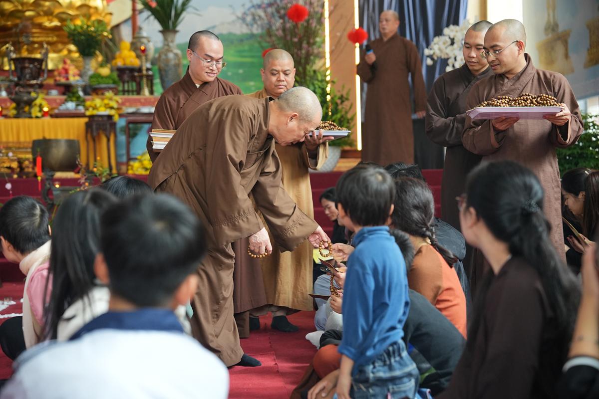 Trước khi chia tay, Hòa thượng đã thân trao tặng đến mỗi khóa sinh chuỗi hạt và thiệp chúc Tết đầu Xuân. Những món quà nhỏ bé nhưng chứa đựng trong đó là tình thương, sự quan tâm và lời nhắn nhủ sâu xa của bậc Thầy dành cho hàng hậu học: hãy biết gìn giữ tâm an, nuôi dưỡng tình thương và sự hiểu biết để bước đi vững chãi trên con đường tu học giữa cuộc đời nhiều biến động.