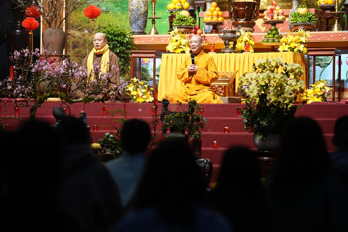 Trong không khí đầm ấm ấy, Hòa thượng bày tỏ niềm hoan hỷ sâu sắc khi được đồng hành cùng thế hệ trẻ trên con đường tu học, như hình ảnh “tre già măng mọc” tiếp nối không ngừng của dòng chảy Phật pháp. Niềm vui ấy càng trọn vẹn hơn khi thấy các bạn trẻ đã chọn trở về chốn già lam trong ngày đầu năm mới để nạp thêm năng lượng an lành, bồi đắp đời sống tâm linh và gìn giữ những giá trị văn hóa tốt đẹp của dân tộc.
