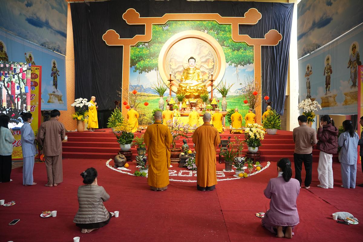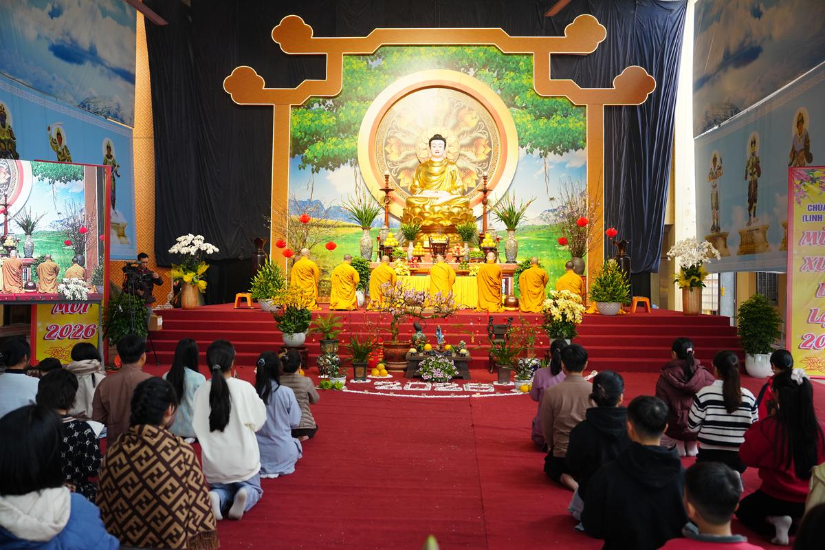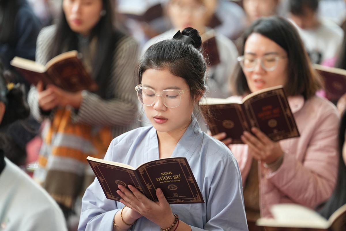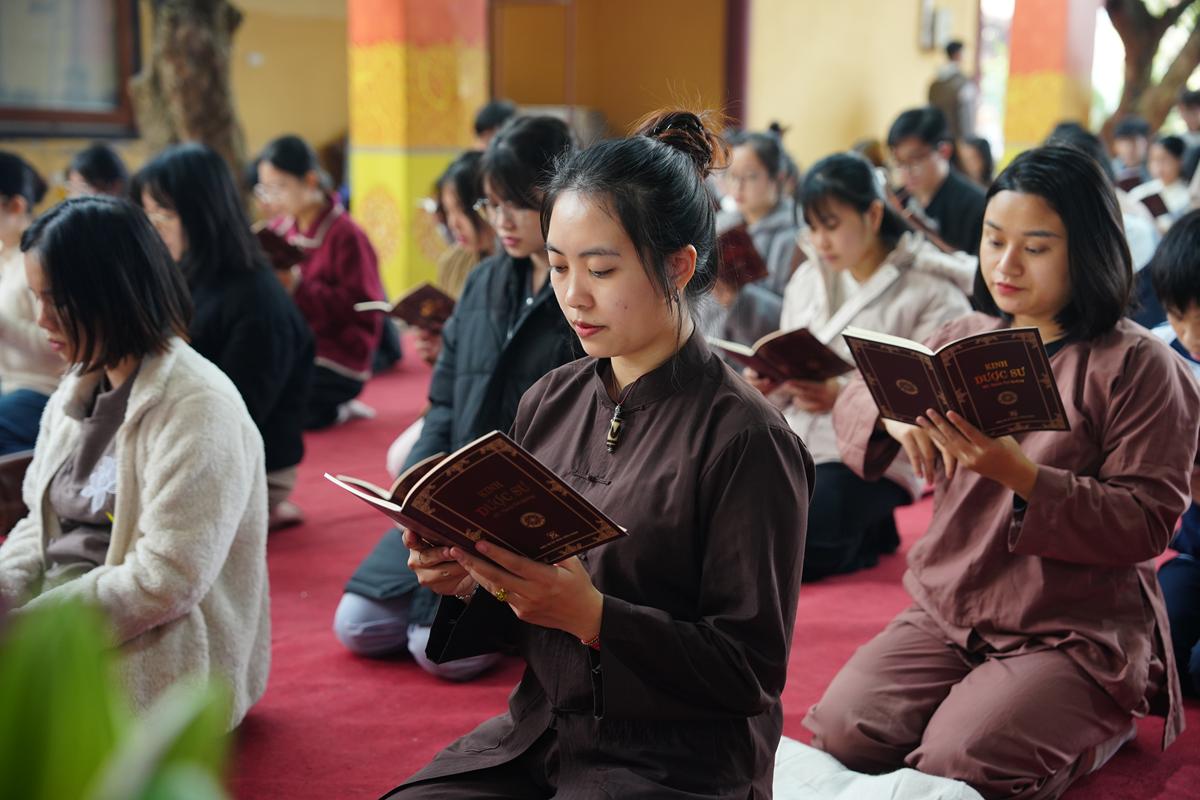 Trong buổi sáng này, trước Phật đài trang nghiêm, đại chúng đã chí thành chí kính tụng thời khóa Kinh Dược Sư dưới sự chủ lễ của chư Tôn đức Tăng bản tự; nhằm cầu nguyện quốc thái dân an, và mong một năm mới mạnh khỏe, bình an tới những người thân yêu. Mỗi lời kinh vang lên còn là giây phút mỗi người quay về nuôi dưỡng niềm tin, khơi dậy tâm từ bi và trí tuệ, phát nguyện sống tỉnh thức, lành mạnh và biết yêu thương.