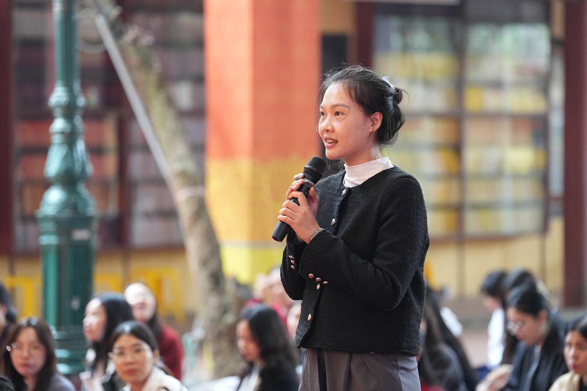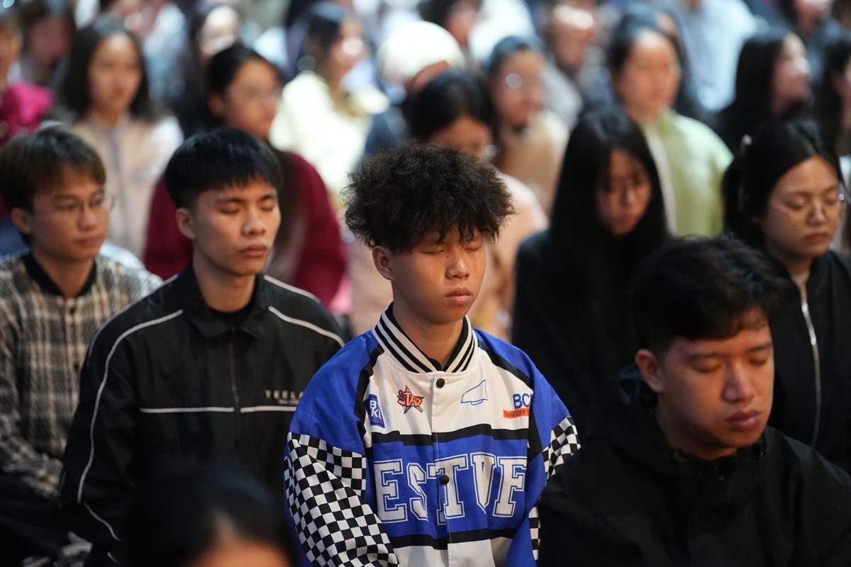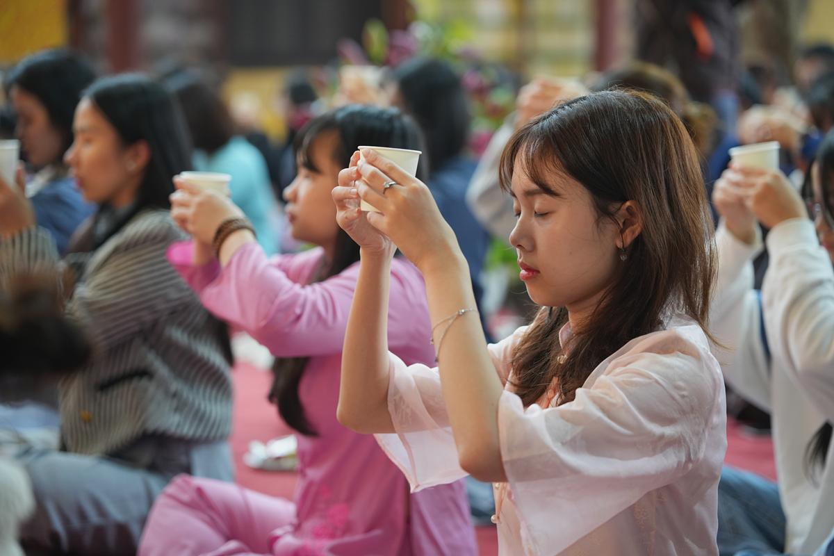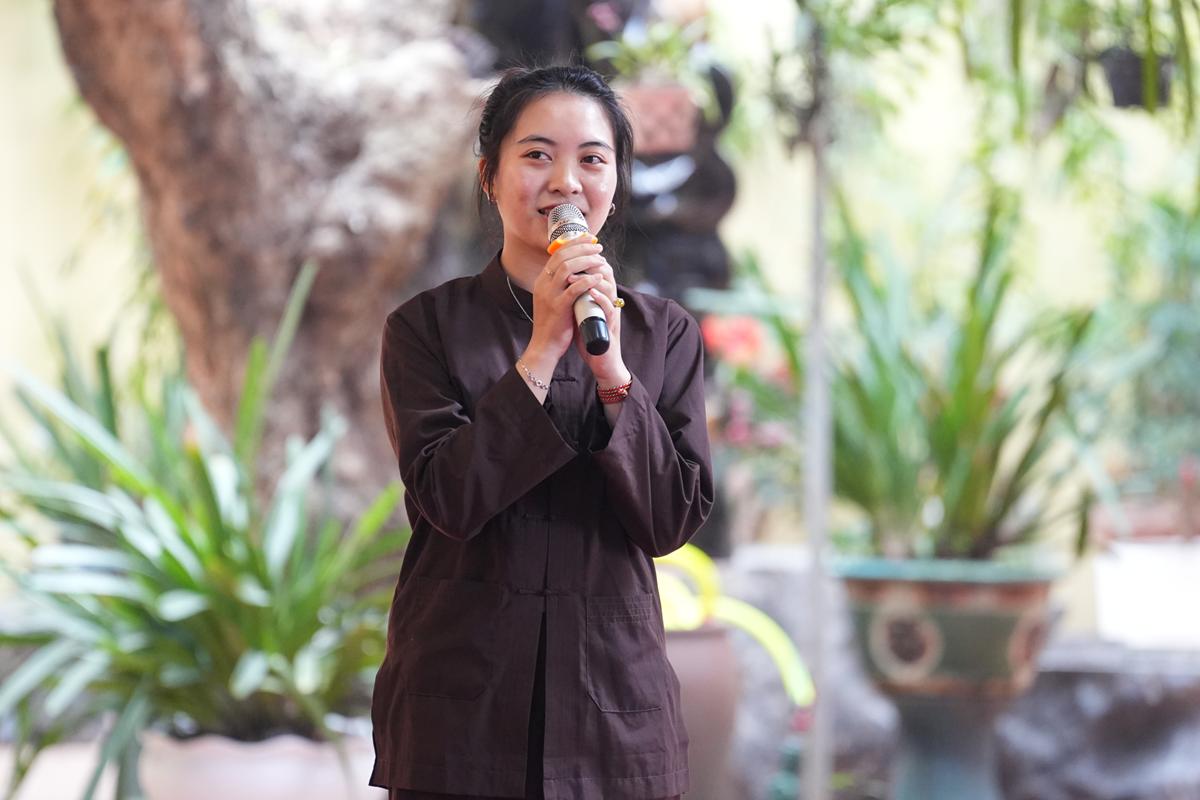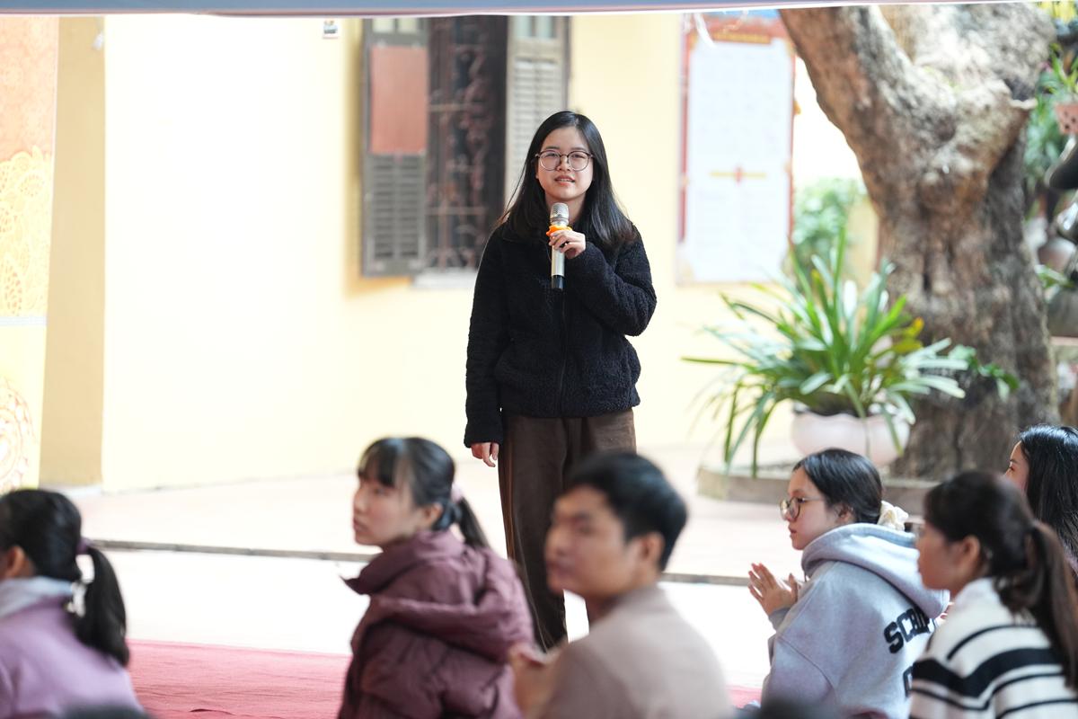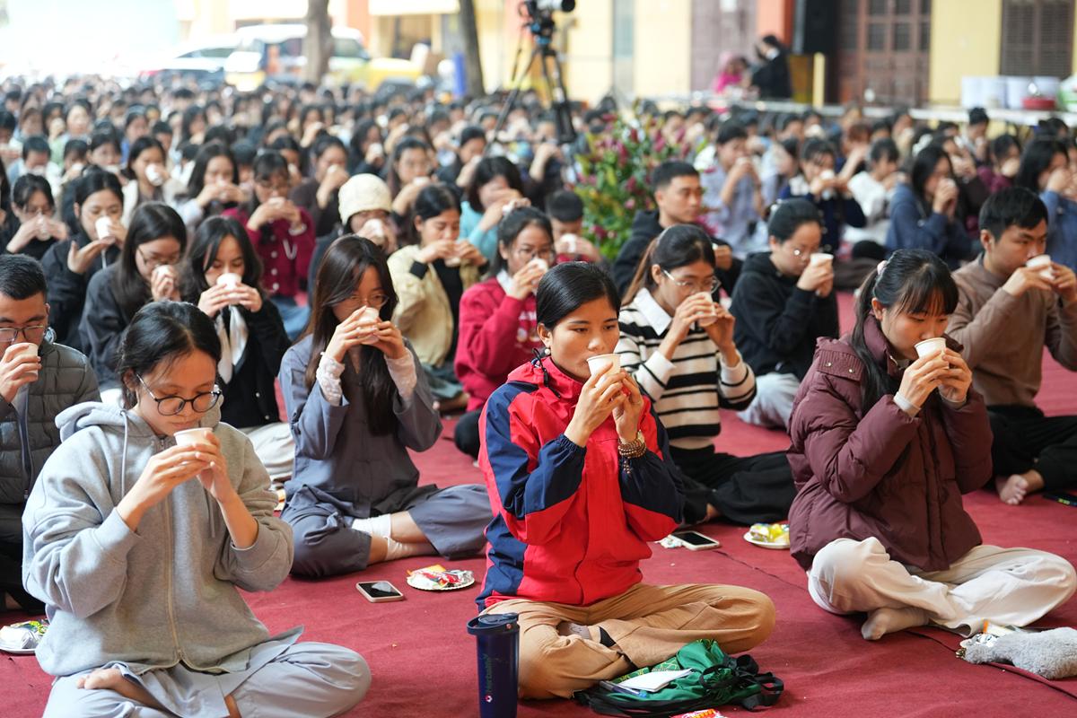 Một điểm nhấn lắng đọng khác của ngày tu là chương trình Thiền trà – nơi những tâm tư vốn ít khi được thổ lộ đã có cơ hội được chạm tới và sẻ chia. Trong không gian tĩnh lặng và ấm áp, có những niềm vui trong trẻo của tuổi trẻ, có những ước mơ còn dang dở, và cũng có cả những mất mát, tổn thương mà các bạn đã lặng lẽ mang theo suốt chặng đường trưởng thành. Mỗi lời chia sẻ là một bước thực tập quay về nhận diện cảm xúc, ôm ấp khổ đau bằng sự hiểu biết và tình thương.