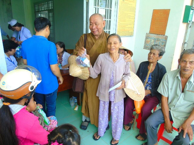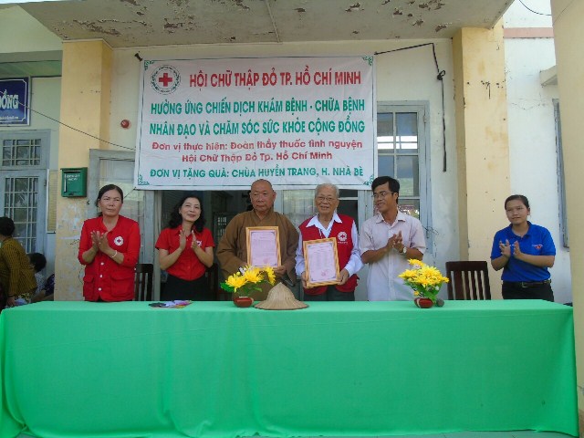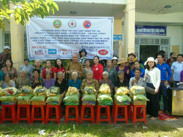 Ngày 27/10 vừa qua, Hội đồng bảo trợ Hội chữ thập đỏ Việt Nam, Hội Hữu nghị Việt Nam – Campuchia, Trung tâm nhân đạo Từ Tâm, chùa Huyền Trang (Nhà Bè) kết hợp với đoàn thầy thuốc tình nguyện Hội chữ thập đỏ Tp. Hồ Chí Minh tổ chức khám bệnh, phát thuốc miễn phí và trao tặng 300 phần quà cho người khiếm thị, nạn nhân chất độc da cam/dioxin, người già neo đơn tại xã Hồ Đắc Kiện, huyện Châu Thành, tỉnh Sóc Trăng.