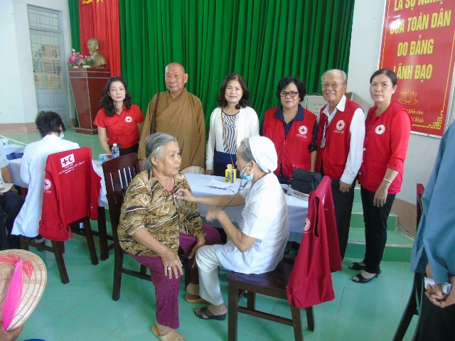 Ngày 27/10 vừa qua, Hội đồng bảo trợ Hội chữ thập đỏ Việt Nam, Hội Hữu nghị Việt Nam – Campuchia, Trung tâm nhân đạo Từ Tâm, chùa Huyền Trang (Nhà Bè) kết hợp với đoàn thầy thuốc tình nguyện Hội chữ thập đỏ Tp. Hồ Chí Minh tổ chức khám bệnh, phát thuốc miễn phí và trao tặng 300 phần quà cho người khiếm thị, nạn nhân chất độc da cam/dioxin, người già neo đơn tại xã Hồ Đắc Kiện, huyện Châu Thành, tỉnh Sóc Trăng.