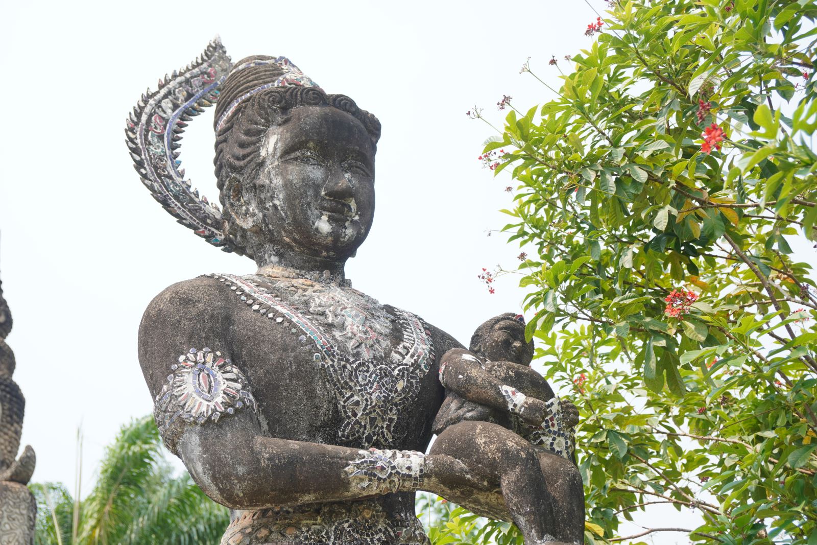 Vườn tượng Phật không chỉ nổi tiếng với các bức tượng Phật độc đáo, mà còn có sự pha trộn điêu khắc tinh xảo của Hindu giáo, Phật giáo cũng như những vị Thần Shiva, Arjuna, Vishnu, Rama, Sita cùng với vô số những bức tượng về con người, thần tiên, động vật, ngạ quỷ, sa tăng. Không chỉ người mộ đạo mà còn có rất nhiều du khách nước ngoài vượt đường xa để đến đây chiêm ngưỡng và chụp ảnh.